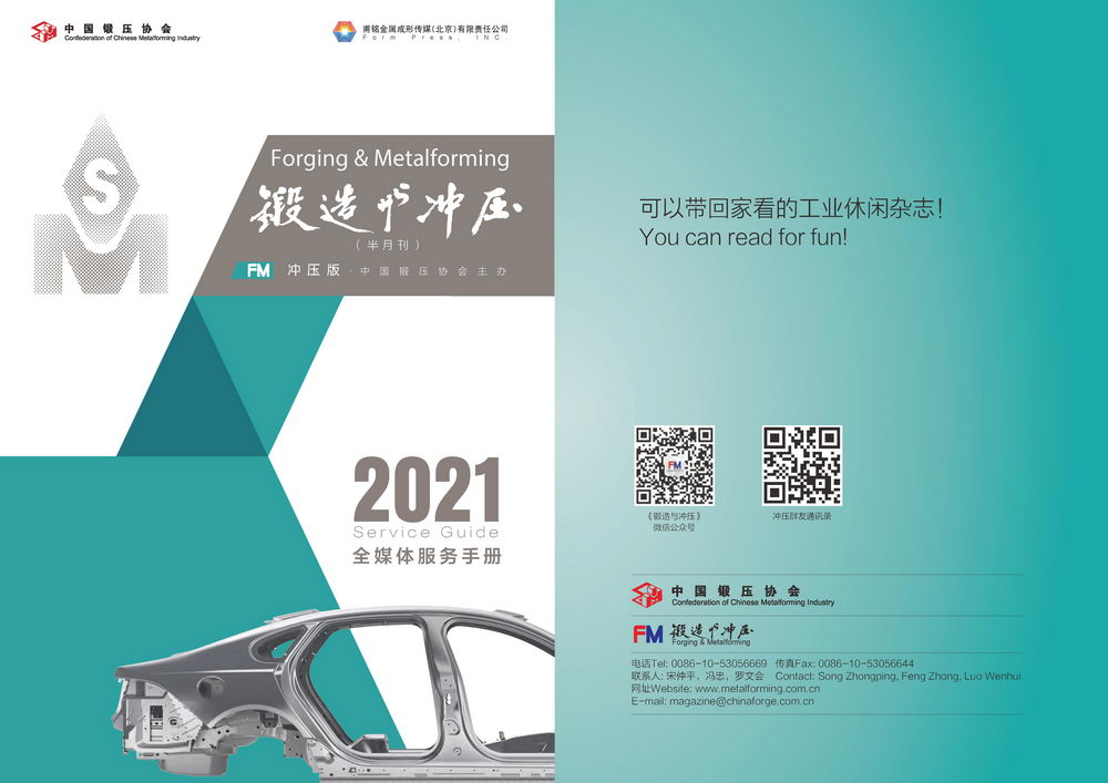 FM《锻造与冲压》由中国锻压协会主办,是一本以市场需求为导向,集信息、技术、产品、市场与管理为一体的综合性高端杂志。月发行量2.5万册,采取B2B发行模式,具有锻压行业针对性最强、覆盖有效率最高的读者群体,是中国锻压行业的领衔杂志媒体,受到国内外广泛的认可。