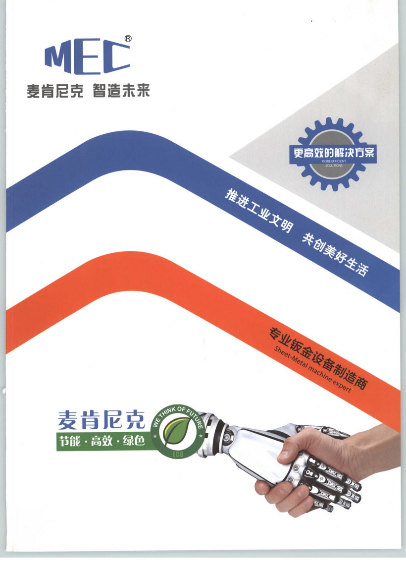麦肯尼克智能装备有限公司(简称MEC)是一家以钣金设备研发、生产、销售、服务为主的综合性公司,总部座落在中国苏州。MEC主要产品有:油电混合数控折弯机、伺服电液数控折弯机、电液数控折弯机、机器人折弯单元、光纤激光切割机、数控开槽机、数控剪板机等,为客户提供高性价比的成套解决方案。