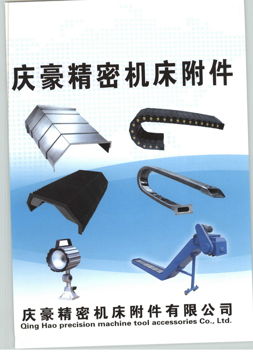 庆豪精密机床附件有限公司是专业从事数控机床、机械设备配套产品研发制造与销售的现代化高新技术企业。自本公司成立以来,一直追求技术不断提高,产品推陈出新,以满足客户需要为己任,通过长期的积累,拥有雄厚的开发、生产、销售能力,并能根据客户的特殊要求,设计制造各种规格的机床防护产品。我公司主要产品有:钢板防护罩、柔性风琴式防护罩、圆桶式、铠甲式、卷帘式伸缩防护罩、铝形防护帘、钢制拖链、塑料拖链、矩形金属软管、DGT导管防护套、恊旋钢带护套、机床导轨刮屑板、T型撞块槽板、可调塑料冷却管、S78系列机床垫铁、机床工作灯、操作件等产品。广泛应用于机床、制药机械、雕刻机械、木工机械、玻璃机械、食品机械等传统机械行业,公司的宗旨是以质量赢得客户,靠诚信赢得市场,可靠的质量,良好的服务,欢迎新老客户来电来函咨询。另外,依靠我公司强大的技术团队,为您提供免费咨询服务,如您对行业有不解之处,可咨询我公司。