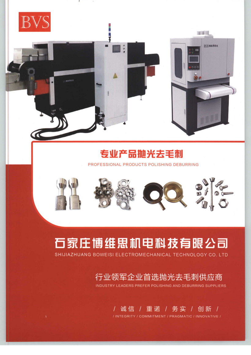 宁波博维思机电科技有限公司,专致产品去毛刺、产品抛光、产品清洗、自动化相关领域解决方案、主打设备有平面金属砂光去毛刺机、高能磁磁针抛光机、高能磁磁针研磨去毛刺机、自动清洗机以及相关非标自动化设备。地处长三角内最具活力的工业明星城市之一浙江省宁波市。位于浙江省宁波鄞州区,距离宁波国际机场5公里,港口15公里,紧靠甬金高速入口处,交通十分便利,工业发达。我公司是一家专业从事高品质去毛刺机、抛光机、清洗机、自动化设备等研发生产及制定相关解决方案的企业,经过全体博维思人几年共同努力,公司现已形成年产销各类高品质自动抛光去毛刺设备近百台,年服务包括世界500强在内的近百家企业及科研院校的能力。其中公司拥有自主知识产权的主打产品《博思》系列高品质自动磁针抛光机、磁针研磨机、自动平面钣金砂光去毛刺机具有品质优异、高效便捷、性能稳定、使用寿命长、性价比高等特性,被广泛应用于包括世界五百强在内的五金机加工业、压铸业、浇铸业、精密电子业、汽配行业、精密五金业等行业企业,投放市场后受到用户的一致好评,近三年用户满意度均在98%以上。