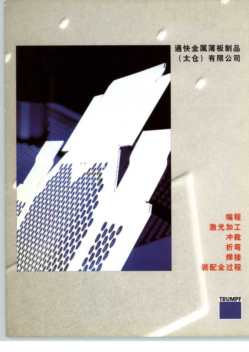 通快在中国的钣金配套示范厂成立于2000年。并于2004年3月通过TUV的ISO 9001:2000的资格认证。 在基于展示和应用中心的功能上,通快薄板制品(太仓)有限公司也对通快中国用户提供最优良的服务,支持及培训。同时与2006年在高速发展的基础上成立了中国大陆区激光应用中心。 通快金属薄板制品有限公司可以为您提供以下服务: 普通钣金加工 三维激光加工 钣金配套厂 钣金技术和技术培训 部件生产加工 产品再设计与开发,与系统解决方案 对于在中国的投资者,通快用户和广大的钣金制品用户,通快钣金配套示范厂也是您首选的合作伙伴。