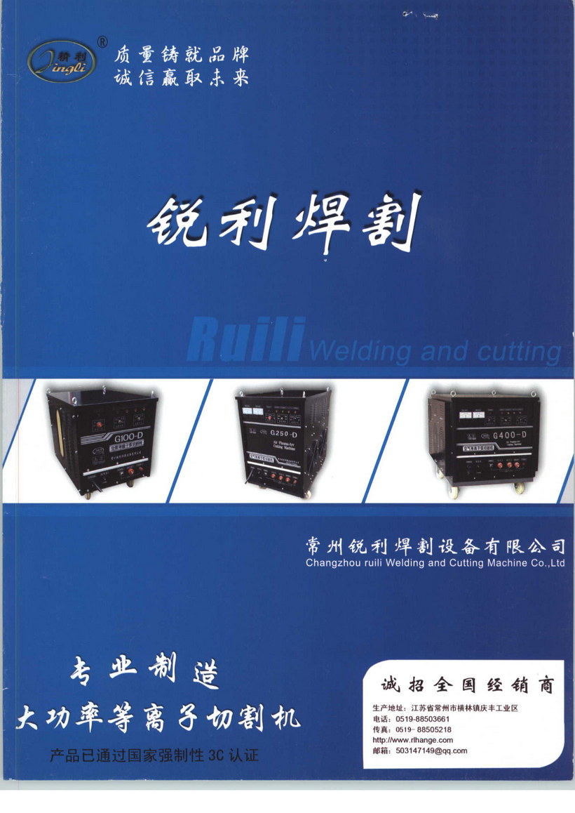 常州锐利焊割设备有限公司(原常州精艺焊割成套设备厂),位于沪宁高速和沿江高速交汇处。历经十年的努力与发展现已成为国内等离子切割机制造企业中的佼佼者,其产品质量与服务均得到了广大用户的肯定与信赖。公司是具有雄厚的制造能力及完善的检测设备。产品工艺先进,性能优良,结构合理,造型新颖。所有产品通过国家权威机构强制性安全认证CCC。