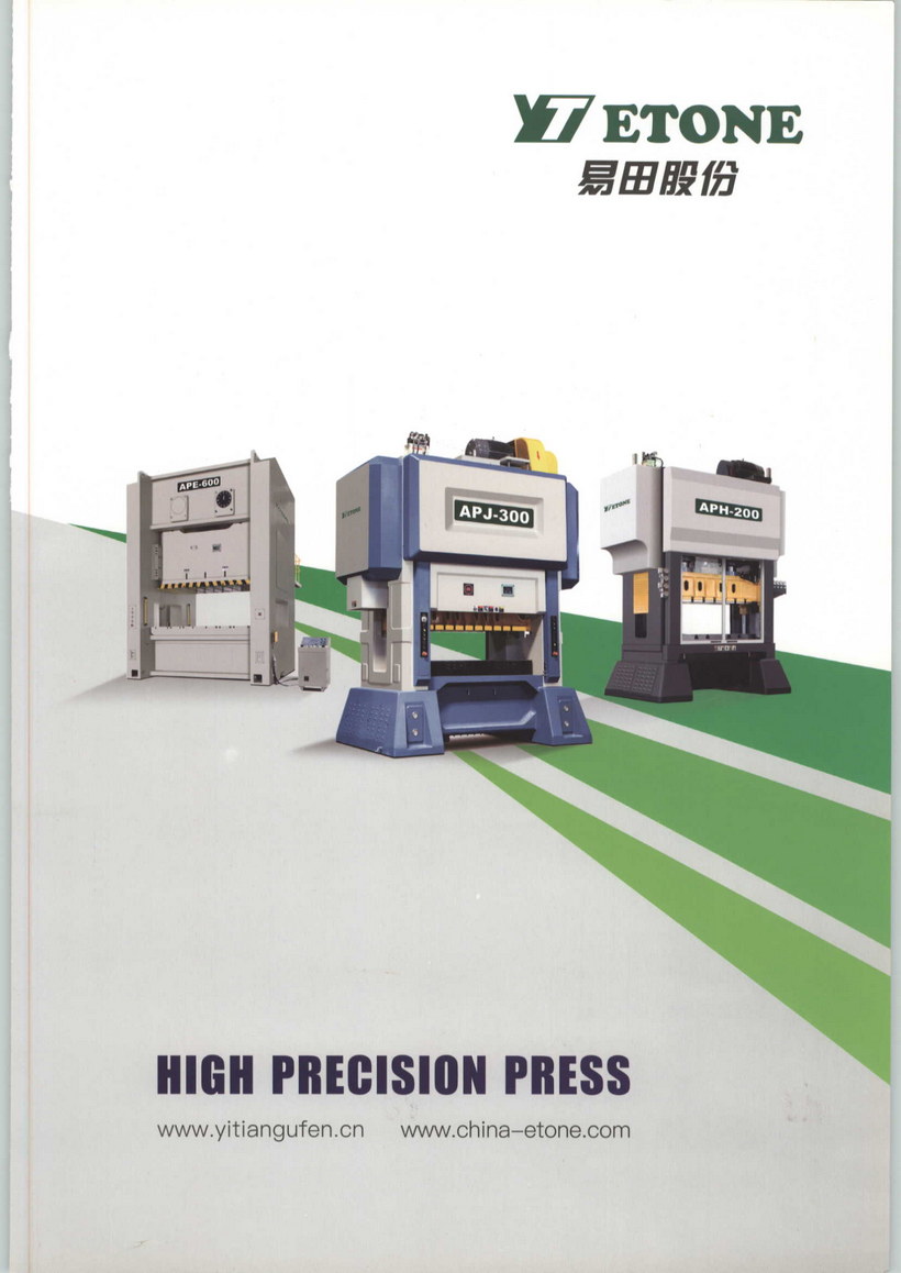 浙江易田精工机械股份有限公司为国内大型、高速及精密锻压设备专业制造商,坐落在沿海开放城市-中国宁波,成立于2018年7月17日(由原2008年成立的宁波市泰易达精密机械有限公司和2012年成立的宁波市西田精工机械有限公司合并组建而成),注册资金3000万元,总投资28500万元,总占地面积79570平方米。我司拥有特大型和大批的精密数控加工设备,各项精密检测仪器,以及全套理化设施等先进的质量控制手段,并实现了ERP、PDM、CAM等企业信息化工程。我司通过中日技术合作,主要生产15T-1000T各种规格开式、闭式精密冲床,特别是400T-800T闭式双点龙门中速精密冲床和龙门双点、三点四导柱60T、80T、125T、200T、220T、300T、400T马达铁芯高速冲压自动生产线。全面通过CE、ISO9001品管认证。所有设备在出厂前,都将接受各种质量保证测试,质量保证跟随着每一个零件,从最初的制造到之后的安装。每当有组合配件添加到主体时,就会进行静态与运算测试,为整个装配测试与装运过程提供认证档案。