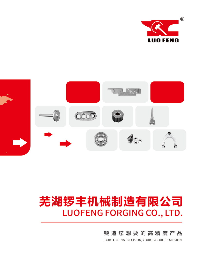 芜湖锣丰机械制造有限公司,一家深耕锻造领域五十载,集锻造、机械加工和热处理为一体的综合型制造型企业。公司总占地60,000平方米,拥有35,000平方米的现代化厂房,200多名员工,其中包括30名各类中高级技术人才。年产能达到5万吨锻件和700万只机加工零配件。工艺与设备我们的专业,源于对锻造工艺的持续精进。12条先进的精锻生产线,配备热模锻、电动螺旋压力机、摩擦压力机等设备,覆盖2,500T至300T全吨位,满足多样化产品需求。80条以加工中心和数控机床为主的机加工生产线,确保产品的高精度和一致性。从研发创新、模具设计与制造,到锻造、机加工、热处理,直至检验与试验,我们拥有一套完善的工艺流程。运用CAD、CAE、CAM、CAT等前沿研发设计软件,结合自动三坐标测量仪、金相分析仪、圆柱度仪、拉力试验机、探伤机等完备检测设备,确保我们的产品从设计到成品,每一步都走在行业的前沿。多元化产品,定制化服务我们的产品线丰富多元,涵盖工程机械系列:链轨节、支重轮;锻造斗齿系列:齿座、斗齿;汽车系列: 如新能源齿轮、电机轴、摆臂、拉杆、门铰链等;锻钢阀系列:如闸阀、截止阀、止回阀等;摩托车系列;园林机械;索具系列;健身器材等多个领域。我们能够提供包括合金钢、碳素钢、不锈钢、铝合金及特种钢等多种类型的原材料的高品质锻造与机加工解决方案,确保产品在您的领域内发挥最佳性能。国际品质管理作为中国锻压协会常务理事单位,我们获得了IATF 16949:2016及ISO 9001:2015国际质量管理体系认证,ISO 14001:2015 环境管理体系, ISO 45001:2018 职业健康安全管理体系等多项体系认证。产品为三一重工、徐工、比亚迪、YISHAN、川崎光阳等国内外知名品牌提供配套服务。我们的合作伙伴遍布美国、意大利、日本等地,这是对我们品质的全球认可。持续创新,共创辉煌锣丰机械,始终坚守顾客至上,以卓越品质、锐意进取的团队和高效服务为基石,不断突破市场边界,追求卓越。我们坚信,通过不懈努力,锣丰将成为精锻机加工领域的领航者,与您共创辉煌未来。">