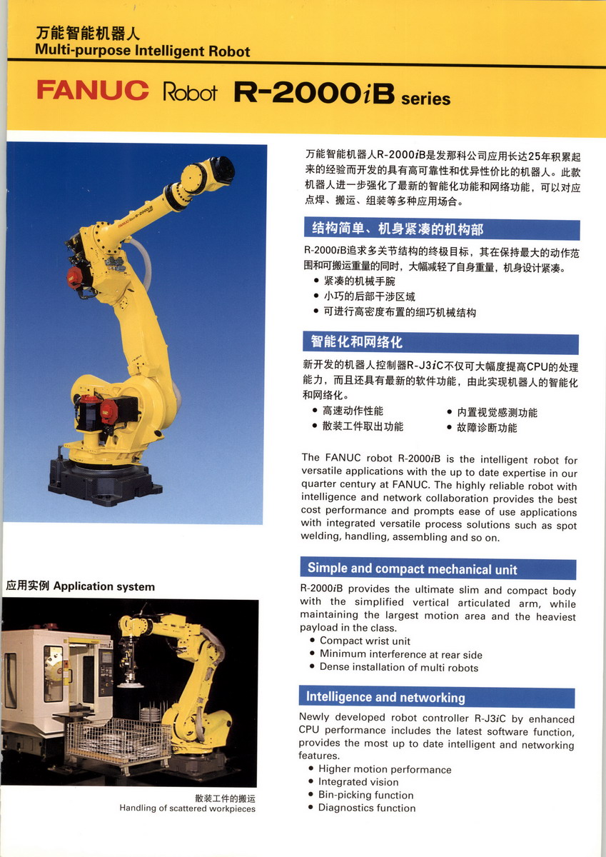 FANUC是全球最多样化的A(工厂自动化)、机器人和智能机械的制造商。FANUC自1956年成立以来,始终是全球计算机数控设备发展的先驱,在自动化领域贡献突出。上世纪70年代,FANUC成为世界上大的专业数控系统生产厂家,占据了全球70%的市场份额。从单台机器的自动化,到整个生产线自动化的变革,FANUC技术为全球制造业革命做出了重要贡献。2008年,FANUC成为世界上最大的机器人生产厂商,成为全球首家突破20万台机器人的生产商,市场份额稳居第一。