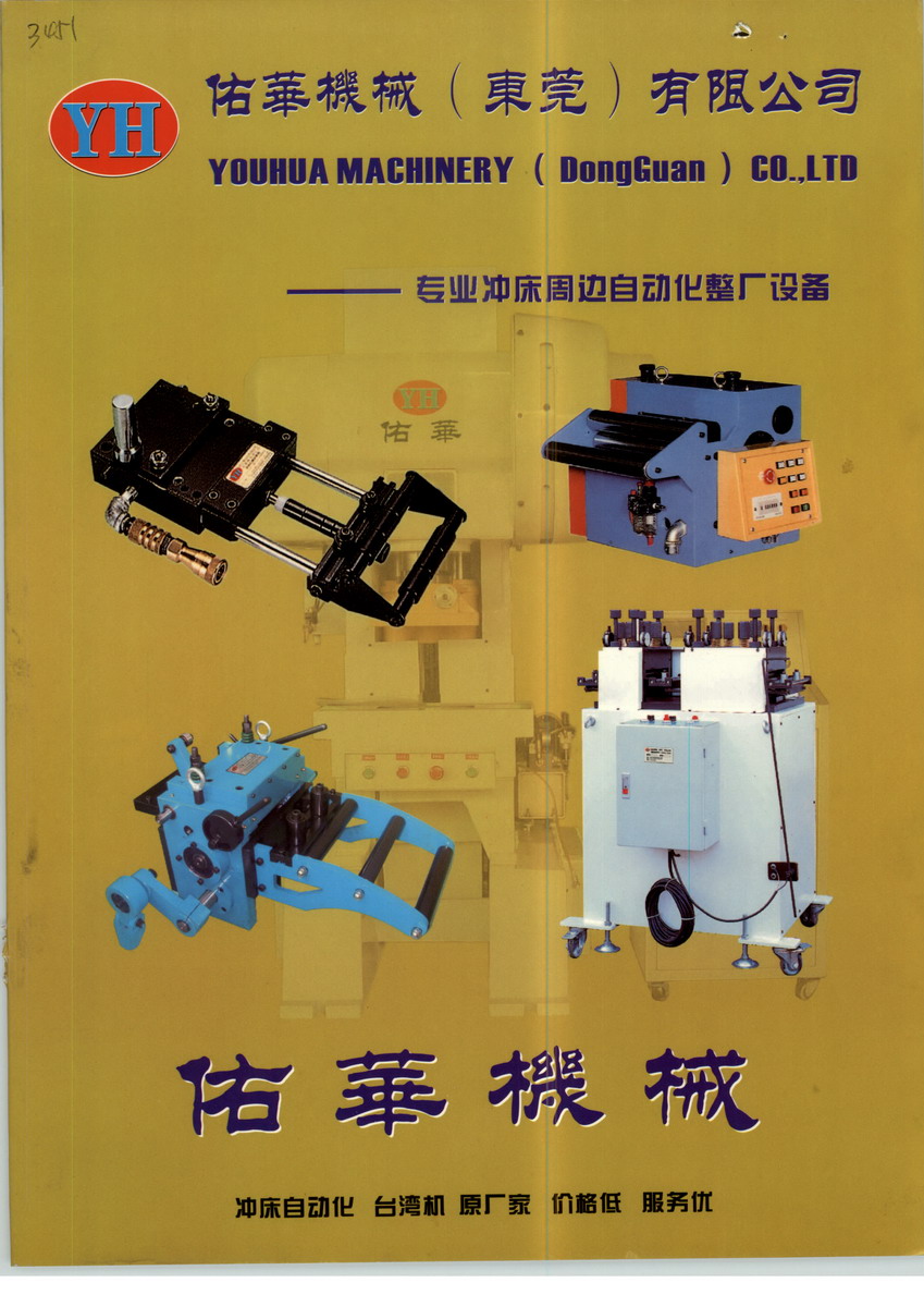 东莞市佑华五金机械厂以设计、制造、销售、服务为一体的完善企业,可根据客户的不同要求,特殊设计制造各种冲床周边冲压自动化系列的设备。公司制造产品有:桌上型精密高速冲床;空气自动送料机;高速滚轮送料机;NC数控滚轮送料机;平面(横)式电子控制送料机;重型材料架;轻型自动(收)送料架;特殊精密(薄、中、厚)板矫正机;自动送料矫正机;NC三合一型整平机等系列冲床周边自动化整厂设备。真诚期待与您合作。