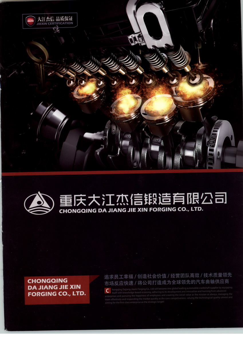 重庆大江杰信锻造有限公司是由重庆大江信达车辆股份有限公司所属锻造公司与重庆杰信模具股份公司合资组建而成的,拥有40多年的锻造生产经验,是生产重型、轻型、微型汽车及轿车发动机曲轴的专业厂家。公司拥有8000T 、6300T 、4000T、2500T、1600T、五条热模锻压力机锻造生产线和8000T、2500T摩擦压力机生产线,1T—5T锤锻线,悬挂式连续热处理生产线、悬链式抛丸机等,年锻件产能50000吨。公司理化计量中心具有完善的理化计量检测能力,拥有德国进口直读光谱分析仪、30吨微机控制电液伺服万能试验机、数字金相显微镜等先进检测设备。公司质量体系完整,已通过TS16949:2009、ISO9001-2008、GJB-Z9001等质量体系认证。