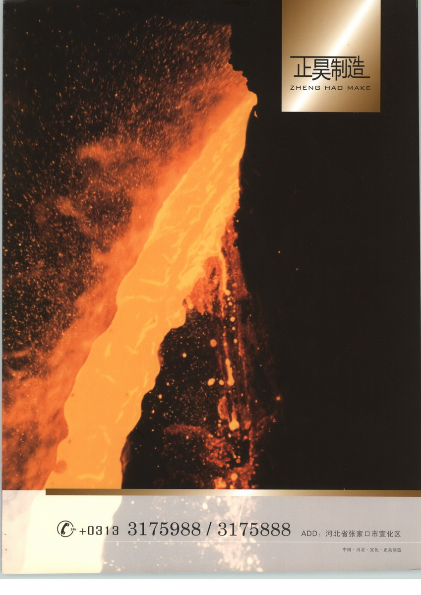 张家口宣化正昊机械制造有限公司始建于2003年,是一家集树脂砂制造、热处理加工、铆焊结构件加工、机械加工、非标设备制造为一体的中型股份制企业。公司占地面积2.7万平方米,拥有职工200多人。公司总资产1.2亿元,年销售额1.1亿元。公司通过ISO9001:2000国际质量管理体系认证。产品远销美国、德国、日本、韩国、俄罗斯及印度等国家和地区。