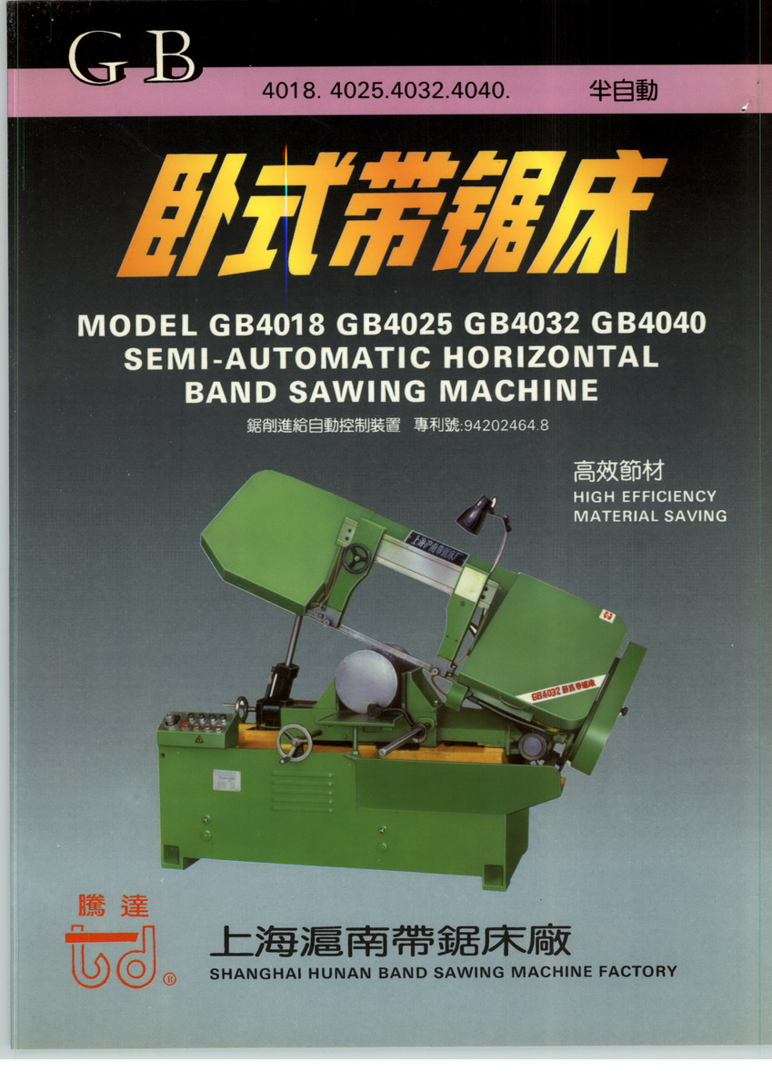 上海沪南带锯床有限公司的前身“上海飞跃工具厂”成立于六十年代初,八五年更名为上海沪南带锯床有限公司,正式生产带锯床,是国内最早研制开发和生产卧立式锯床的专业厂家之一。属于国家重点新计划产品。公司主要生产“腾达”牌带锯床,用于切削各种金属材料,具有高效ぁ⒏呔?取⒌秃牟牡忍氐悖?腔?导庸ば幸当乇傅南冉?璞浮<br>“腾达”带锯床分为立式和卧式两大规格数十个品种,产品切削能力可达φ1000mm以上。更可按客户要求订制各种特殊规格锯床。自从1988年“腾达”带锯床首次走出国门以来,我们的产品已经远销整个东南亚、非洲、南美和东欧。“腾达”带锯床已经成为具有国际知名度的品牌。