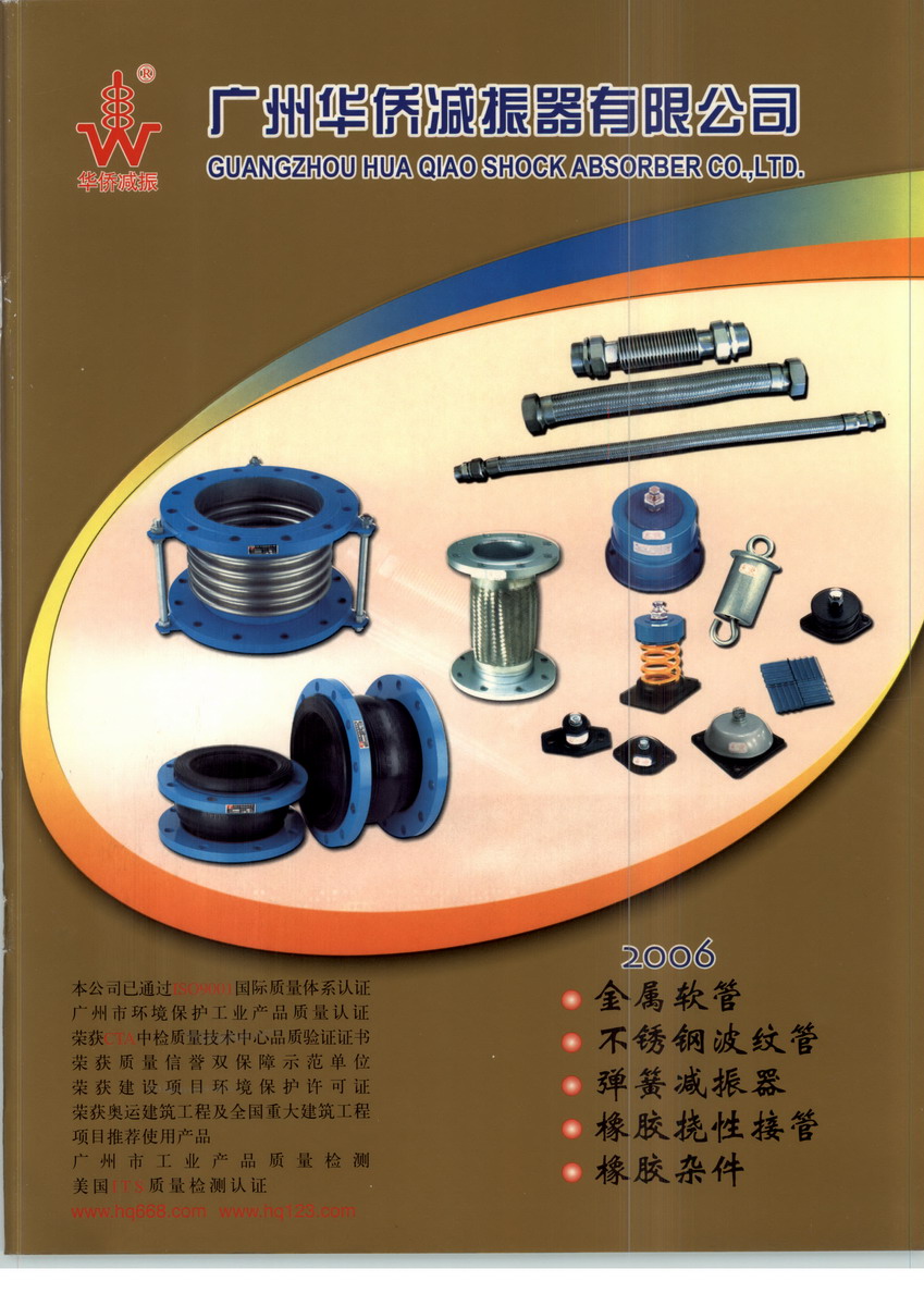 本公司成创建于1989年,目前公司属下共有五个制造分部,分别有减振器制造分部、不锈钢波纹管制造分部、汽车波纹管制造分部、橡胶制造分部、高温防火软连接制造分部,公司在全国下设二十多个办事处,本公司拥有各类优秀专业人才,采用与世界接轨的整套设计、制造、测试、检验的先进设备和技术,用技术开发了系列减振降噪环保产品,建立了全系统化、电脑控制和管理的一流的生产基地。是广东地区生产减振产品规模的制造商之一。|本公司的金属软管、不锈钢波纹管、非金属软管、风机盘管自动生产线是使用日本松下,芬兰肯比公司、美国飞马迪焊接设备。产品按照国外先进专业标准及我国GB标准制造。有很好的抗腐蚀能力和温度稳定性,耐高压、耐高低温、耐腐蚀、高柔性,可以起到补偿位移,吸收应力的作用。|本公司生产的橡胶挠性接头是采用美国联信集团的线网及日本丁氰240、氯丁胶、马来西亚橡胶原料制造,具有耐热、耐油、耐腐、耐酸、耐磨、耐老化作用。可广泛应用于各行业的水暖通风管道、给水排水和循环水管、冷冻管道、化工防腐设施上。|本公司专业生产硅胶纤维布、硅胶钢丝纤维布、氟胶纤维布、聚四氟乙烯涂覆玻璃纤维布、纤维排风管(高温防火软接管)等非金属材料。产品具有耐高温、耐透气、抗老化等性能。是一种用途广、高性能的新型材料。|本公司的产品品种多、规格齐,产品适用于石油、化工、轻工、建筑、造船、钢铁、机械、电力、航空、机车、汽车等领域。产品可使高层建筑的空调机房、冷气机组,水泵及管道的安装获得理想的减振效果,并已得到国内外几十家大型空调制造厂家的检测、认可和配套使用。目前,本公司产品已成功进入港、澳、台及欧美英等国际市场。|本公司可按图按样订制各类产品,并坚持“以质求存,科技创新,优质服务,信誉为本”的经营理念,以卓越的产品、合理的价格,一流的服务奉献于社会,贡献于人类。
