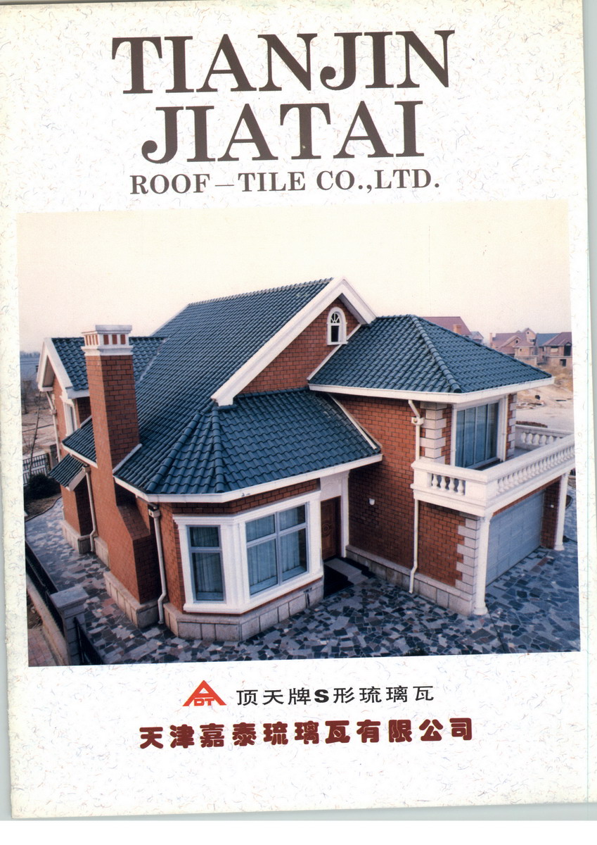 天津嘉泰琉璃瓦有限公司是由新加坡嘉丰集团与天津开发区工业投资公司等共同投资兴办的专业生产西式琉璃瓦的生产厂家。该公司现有职工30O人,主要产品为S型西式琉璃瓦系列产品,1996年年产量为600万件,出口量为50万件,出口金额为50万美元,产品主要出口韩国、日本等国。该公司全套引进日本、德国设备,采用当地的优质陶土,利用国外先进技术,所生产产品全面达到国家标准GB9197一88,达到日本J1S—92标准,并获得了96年烧结装饰瓦产品国家监督抽查合烙企业证书、96全国六大部颁发的小康住宅产品推荐证书。产品注册商标为“顶大”牌。