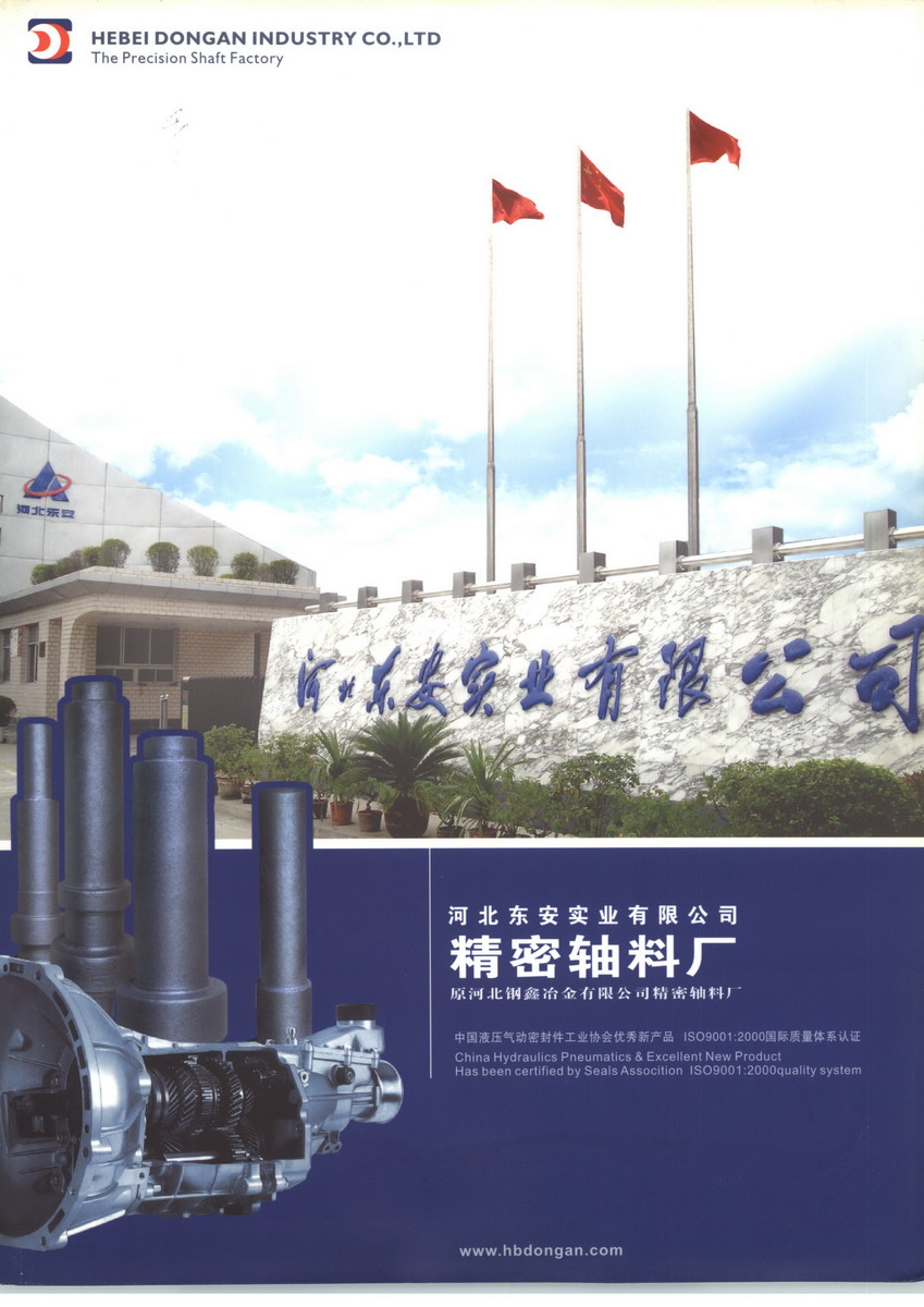 河北东安精工股份有限公司,其前身为河北省冶金技术开发公司,始建于1984年,1997年改制为河北东安精密轴料厂,2011年因上市需要进行了股份制改造,是目前我国楔横轧企业中建设最早、质量最优、规模最大的专业化厂家。公司位于石家庄国家高新技术产业开发区,注册资本6000余万元,占地面积22000平方米,生产面积12000平方米,固定资产33000余万元。先后通过ISO9000,TS16949,ISO14000,ISO18000等认证。产品主要包括商用车、乘用车、农用机械、液压、电机、工程机械、煤矿机械、石油机械、电动工具等行业的齿轮轴、凸轮轴、油泵轴、输入轴、输出轴、空心轴、中间轴、二轴、贯通轴、高速轴、低速轴、阀芯、主轴、杆等等各类阶梯毛坯轴及其粗车件,2011年产销重卡变速器轴类180余万件,轻卡变速器轴类20余万件,轿车变速器轴类50余万件,液压和工程机械等其它轴类20余万件,累计重量2万余吨,装备年生产能力4万吨。