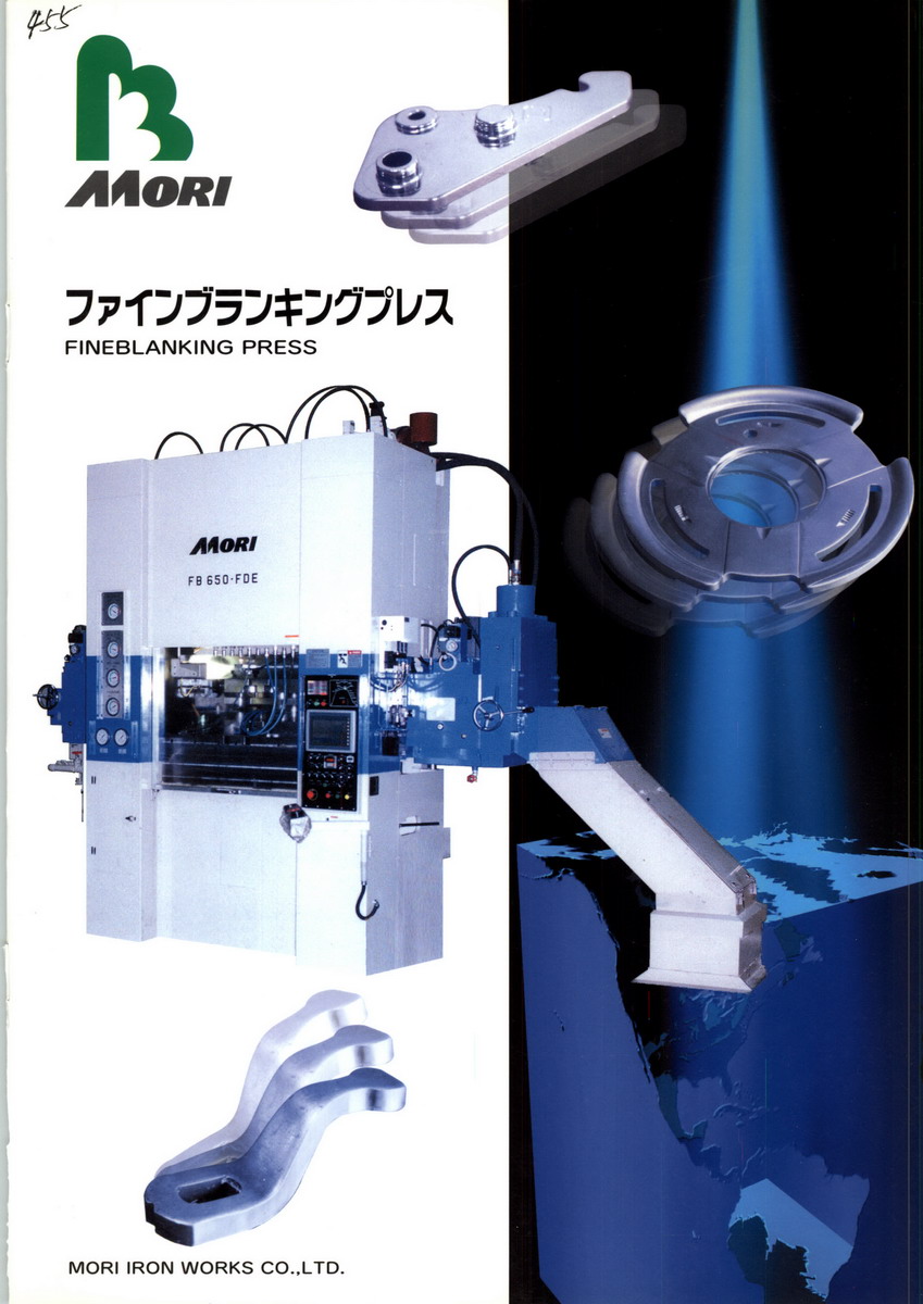 MORI森铁工株式会社主要产品:精冲压力机.精密冷锻压力机.冷摆辗压力机.各种液压机.锻压机械.环保设备的设计与制造.产品系列:1. 精冲压力机.适应不同模具结构./FB650-FDE-B(6500KN)2.多轴控制成形压力机/MSF1000(1000KN)3.摆辗成形压力机/MCOF650(6500KN)