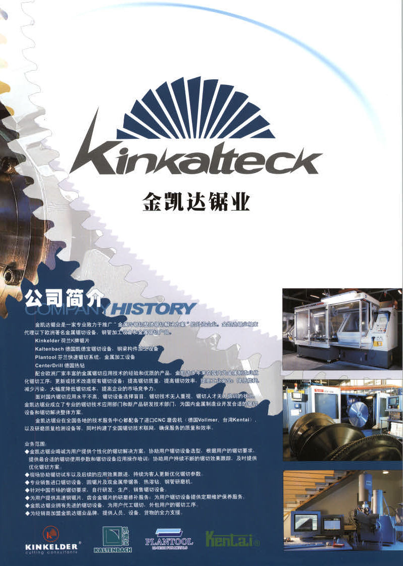 苏州金凯达机械科技股份有限公司是一家专业致力于推广“金属冷锯切成套设备解决方案”的高新科技企业。公司集研发、生产、销售高精密冷锯于一体,并代理欧洲、日本、台湾等地的尖端冷锯设备、冷锯圆锯片、金属下料加工设备,都是行业里面的佼佼者。