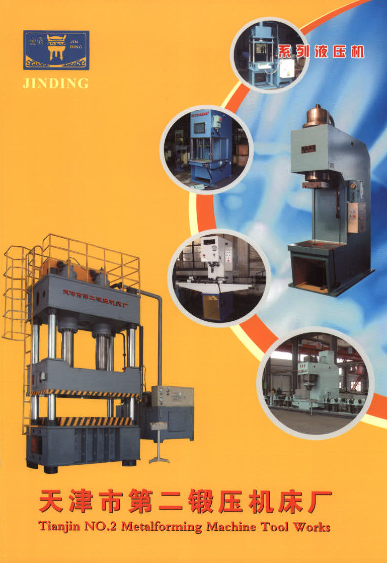 天津市第二锻压机床厂是天津市锻压机床总厂所属企业,具有40多年生产液压机床的历史。产品共分为12个主系列,8个派生系列,数百种规格产品,是国家定点生产液压机床的主要专业厂家之一,具有制造锻压设备的丰富经验和雄厚的技术力量。主导产品有:单柱液压机、四柱液压机、精密校直液压机和高精度液压机等,并为用户设计生产了千余种专用液压机。其中高精度液压机拥有多项国家专利技术。企业占地面积35000平方米,坐落天津北辰工业区,厂房设备,检测手段先进、完备。用户市场遍及军工、农机、纺织机械、航天航空、家用电器、机床、汽车、轻工、磨具磨料等行业。