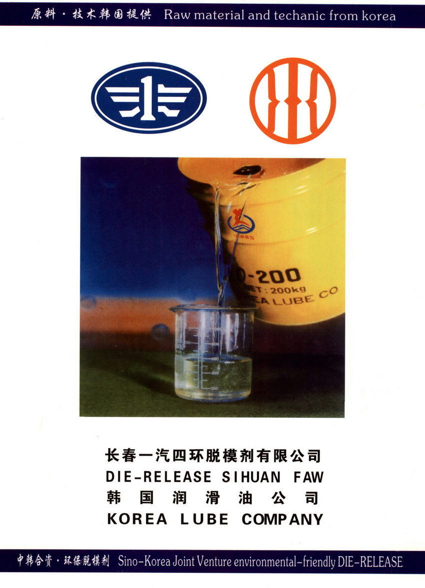 长春一汽四环脱模剂有限公司位于吉林省长春市西部经济开发区。创办于一九九九年,隶属长春一汽四环集团公司,属中韩合资企业,系中国锻造协会会员单位。主要产品生产各类锻造脱模剂,长期为长春一汽、南汽、上柴等40余家大中型企业配套产品,远销台湾、俄罗斯。