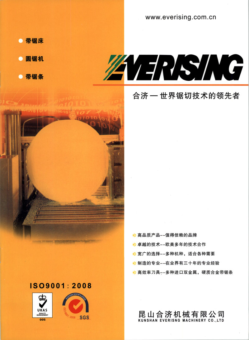 “EVERISING” 生产的带锯床作为世界著名品牌之一, 每年参加美国芝加哥IMTS、欧洲EMO、中国CIMT、Aluminium China 中国国际铝工业展等诸多展览会,获得国际ISO-9001和CE认证。 产品自设计﹑制造﹑销售至售后服务完全按照ISO-9001的标准与原则进行,产品亦充分考虑到操作的安全性与方便性及机械性能的高精度与高效率。