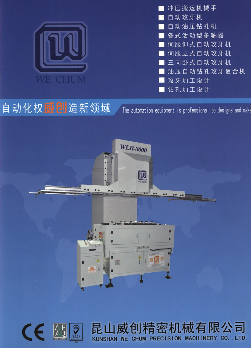 本公司秉承提供给客户高质量、高效能的产品的一贯宗旨。在创造、奉献、结缘的精神理念下,多年来潜心 于精密自动多轴攻牙机、钻孔机、多轴器、专用机等设备的研究与开发,以创新的设计理念,融合不断突破的技术,生产一系列高质量、高效率、新颖的产品提供客户选择使用,颇获客户好评。近年来为面对快速变化的社会环境,加速产业升级,公司不断引进许多精密的仪器及设备,配合公司累积的经验在产品的外观设计、质量、功能及稳定性上做了大幅度提升。另外针对各种3C产业、NB零组件﹑IT产业机器、汽车及脚踏车零组件等,举凡于钻孔和攻牙部份,本公司亦可代客寻求解决方案、规划设计,欢迎洽询。