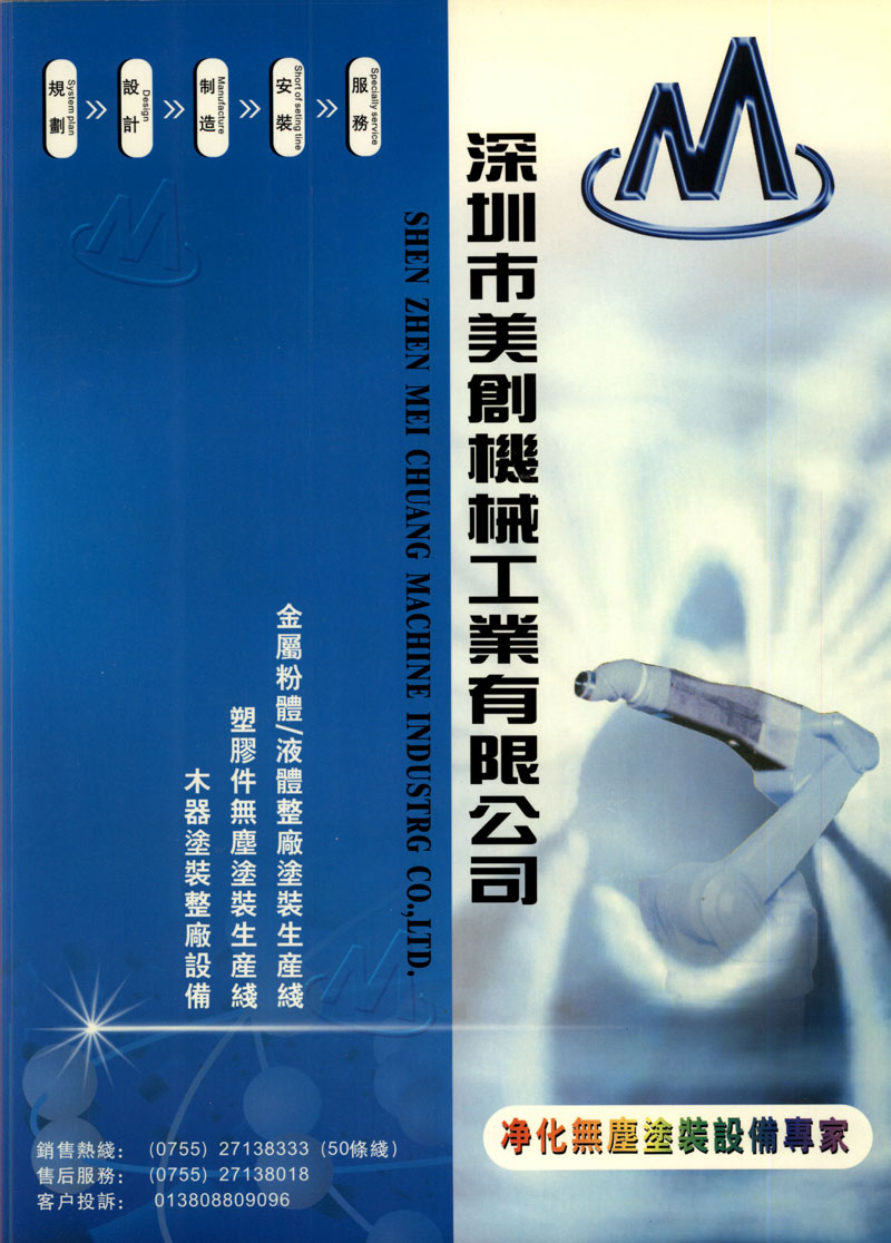 我公司是专业从事无尘自动化涂装设备的大型实业公司。产品涉及塑胶、五金、木器等行业。