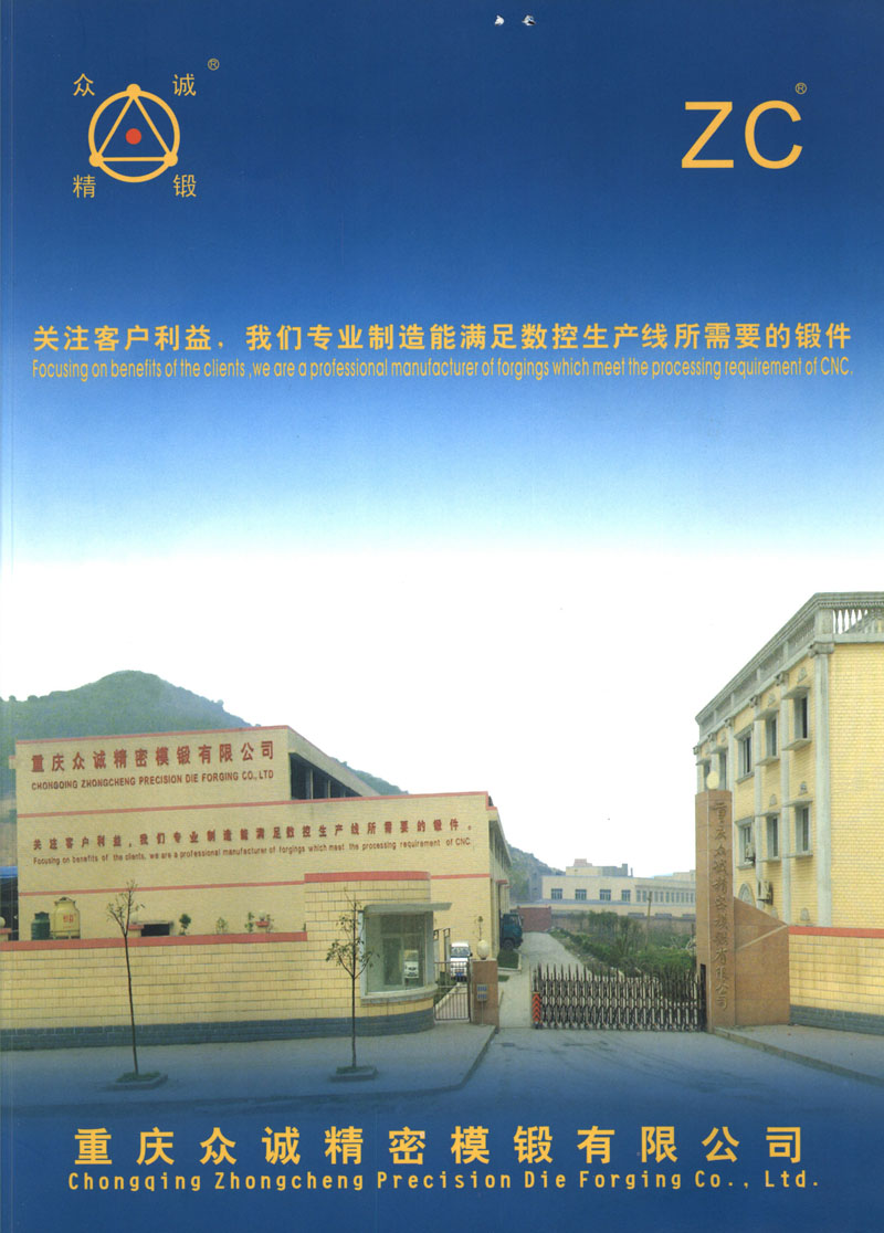重庆众诚精密模锻有限公司系中国锻压协会会员单位和重庆锻压协会理事单位,是一家专业制造能满足数控生产线所需要锻件的民营企业。公司始建于1994年,坐落在年轻而富有朝气的直辖市--重庆市。占地面积14000平方米。