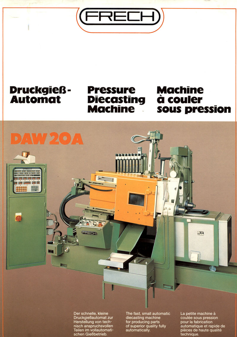 富来公司创建于1949年。1959年开始生产用于锌、锡和铅等合金加工的热室压铸机并很快占领了市场。随着镁合金压铸的发展,富来公司也致力于研究其工艺和设备。1966年世界上专用于镁合金压铸的热室压铸机在富来诞生,揭开了镁合金压铸机生产史的第一页,一年以后又正式实施用于加工铝和铜合金的冷室压铸机计划,同年投放市场。今天,富来公司能够独立向用户提供自有品牌压铸机及所有的自动化周边设备。