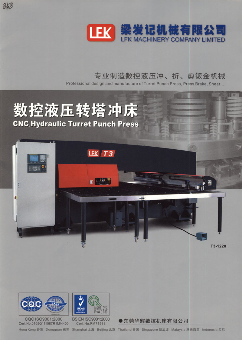 LFK香港梁发记机械集团公司其下3间下属公司,已发展成为集科研、开发、生产、销售以及服务于一体的高新科技企业。1992年自置30000平方米厂房,成立了东莞华辉数控机床有限公司,在位于交通便利的广东省东莞市清溪镇。2008年2月自置70000多平方米厂房,成立了信宜华辉数控机床有限公司。2014年11月自置10000多平方米厂房,成立了信宜协华精密钣金有限公司。现共有600多名人员。在管理方面采用全电脑的管理体系。具有先进的技术、优良的品质、优质的服务、赢得了广大客户的赞誉。
