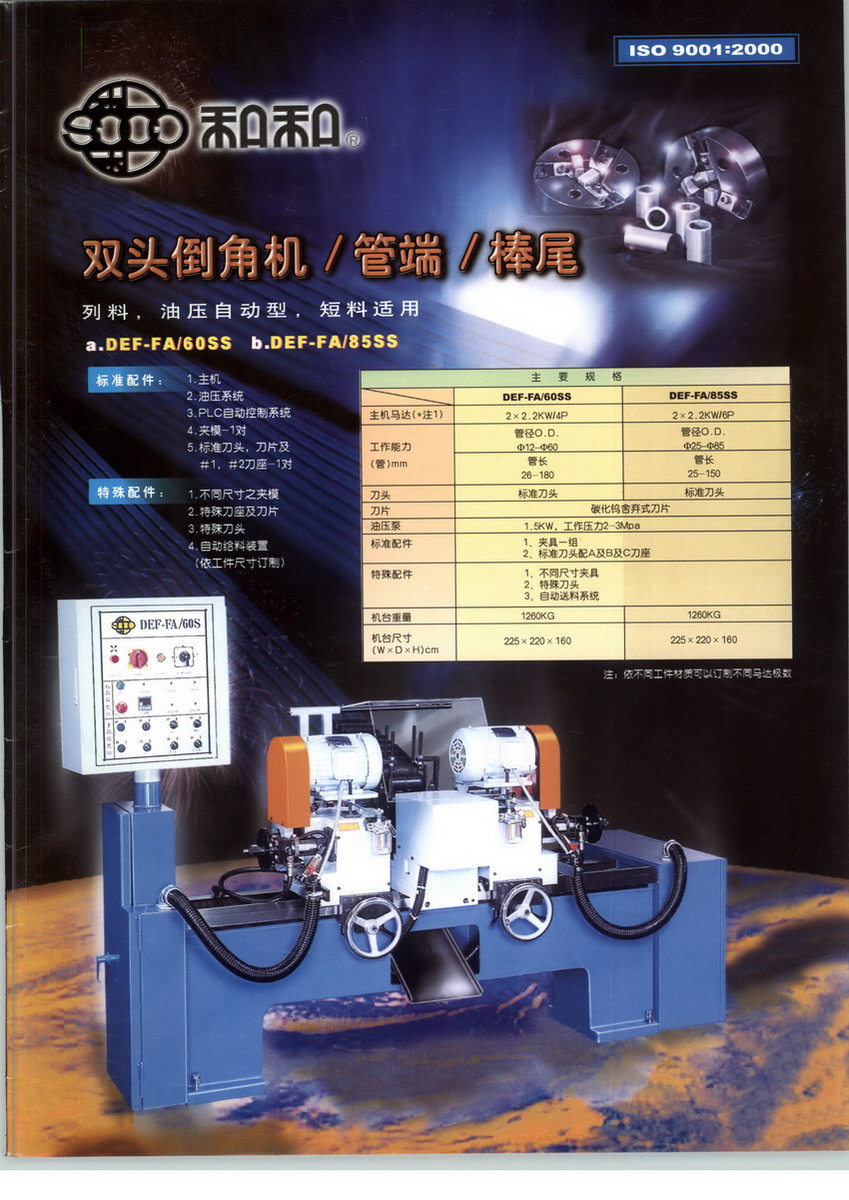 和和机械(张家港)有限公司是专业制造金属管材类加工机械设备的台资企业。主要产品有数控弯管机,半自动弯管机、全自动弯管机、金属圆锯机、金属切管机、管子端面倒角机,管端成型机以及锯片研磨机和金属圆锯片等。产品广泛适用于汽车配件,摩托车制造行业,空调制冷行业,自行车、童车行业,健身器材,钢家具行业,建筑装饰行业以及所有使用金属材的行业。