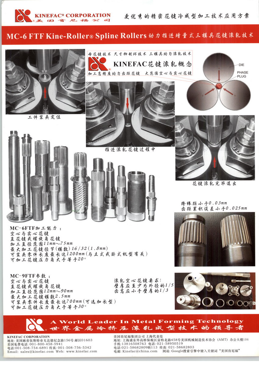 美国肯尼福公司—Kinefa’Corporation,成立于1962年,其冷压成型技术可以追溯到1930年,位于工业科技发达的美国麻省第二大城市伍斯特市,创始人现任总裁霍华德(Howard A.Greis)先生代表美国肯尼福公司起草了相关冷成型专业的美国国家技术标准,并编著了美国机械加工工艺技术手册中的滚丝工艺手册,拥有众多冷成型技术专利,并奠定了美国肯尼福公司作为北美冷挤压滚轧成型加工设备制造行业的龙头企业地位。