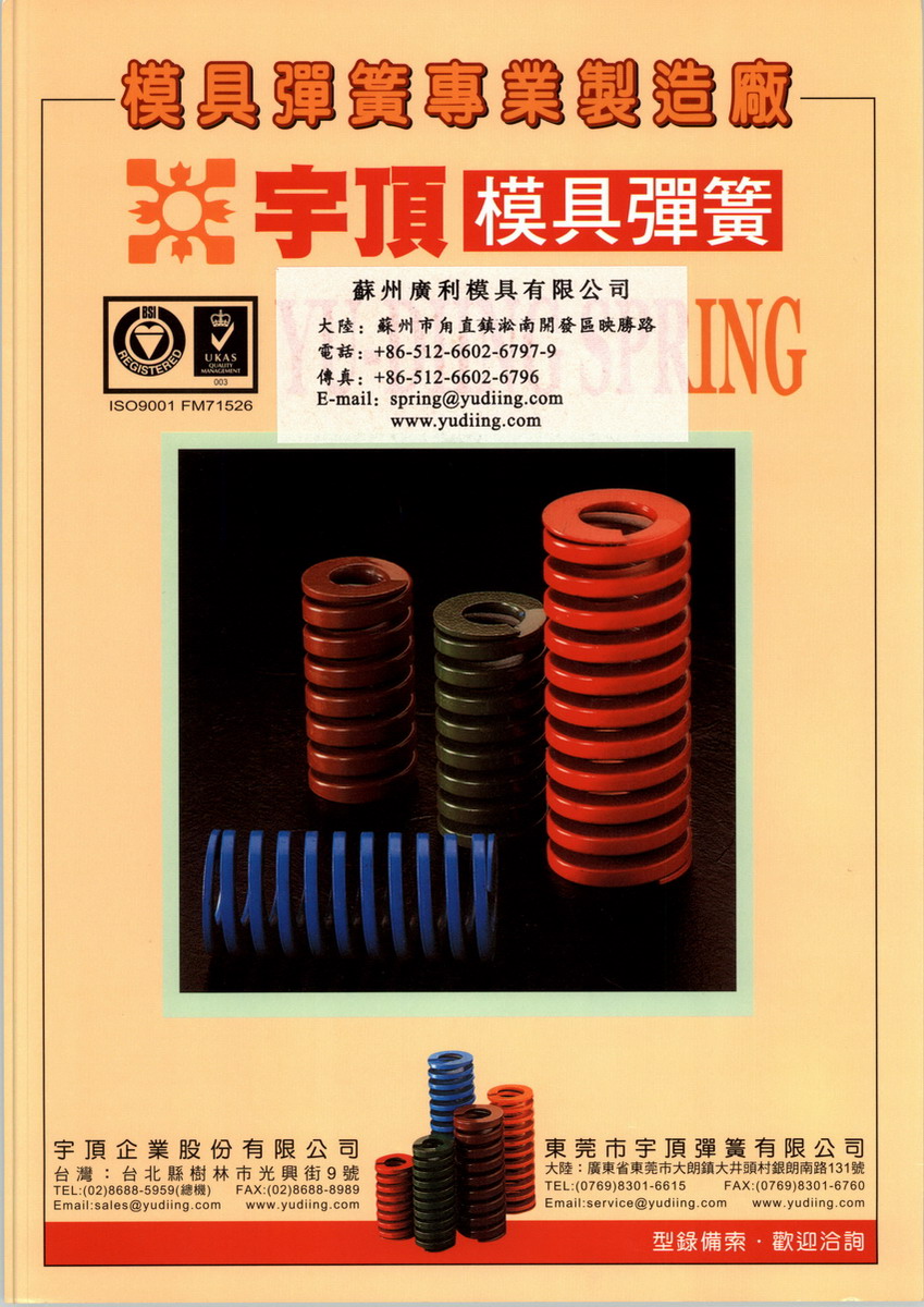 宇顶弹簧乃专业扁平线弹簧制造厂发展至今已有20年以上的历史,专致于各种不同类型及用途的扁平线弹簧研发及制造,种类涵盖汽车工业、机械、OA产品、家电、建筑、电子、以及计算机制造业,产品销售给台湾各大五金贸易商、大陆及东南亚国家......等
