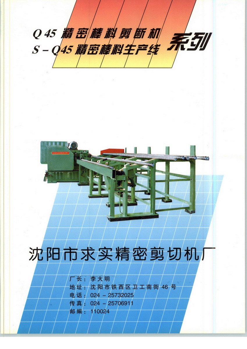 沈阳市求实精密剪切机厂,是专门从事精密棒料剪断机的研制,开发和生产的企业。企业技术力量雄厚,集中了国内著名的精密棒料剪断机设计、制造专家。我厂研制的精密棒料生产线,不仅挡住了进口,填补了国内空白,还被中国锻压协会列入1996年8月至2001年9月大事件中。