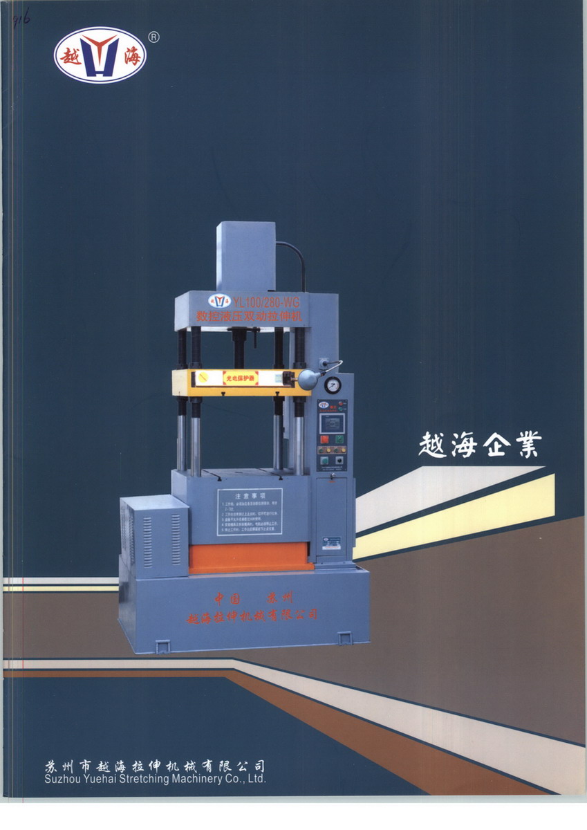历经10年风雨洗礼,无论是在科技发展、还是在技术创新上,越海在行业内一直处于领先地位。时代在发展,世界在融合,越海人顺应市场潮流,有机地将现代理念融入产品创新设计中,开发出了YL系列数控液压双动拉伸机,该产品通过设计发明的曲肘增力机构,实现快速锁模,可替代冲床。高效节能;并采用可编程序控制器(PLC) 和人机界面、光电保护装置、自动退料装置、新型压边机构、自动冷却系统、中心润滑系统等创新技术•,使其与传统机械式拉伸机和油压机等同类产品相比,在设备体积上缩小40%、工作效率提高70%、安全性能大大提高。与此同时公司正在积极研发“液压拉伸机自动化装置”、“数控多工位液压自动拉伸机”、“自动下料机”等项目。相信不久的将来,越海会涌现出一批更节能、更环保、更高效、更智能化的产品及配套设备,全面冲击国内金属薄板成型设备领域, 必将在国际市场上引起强烈反响I