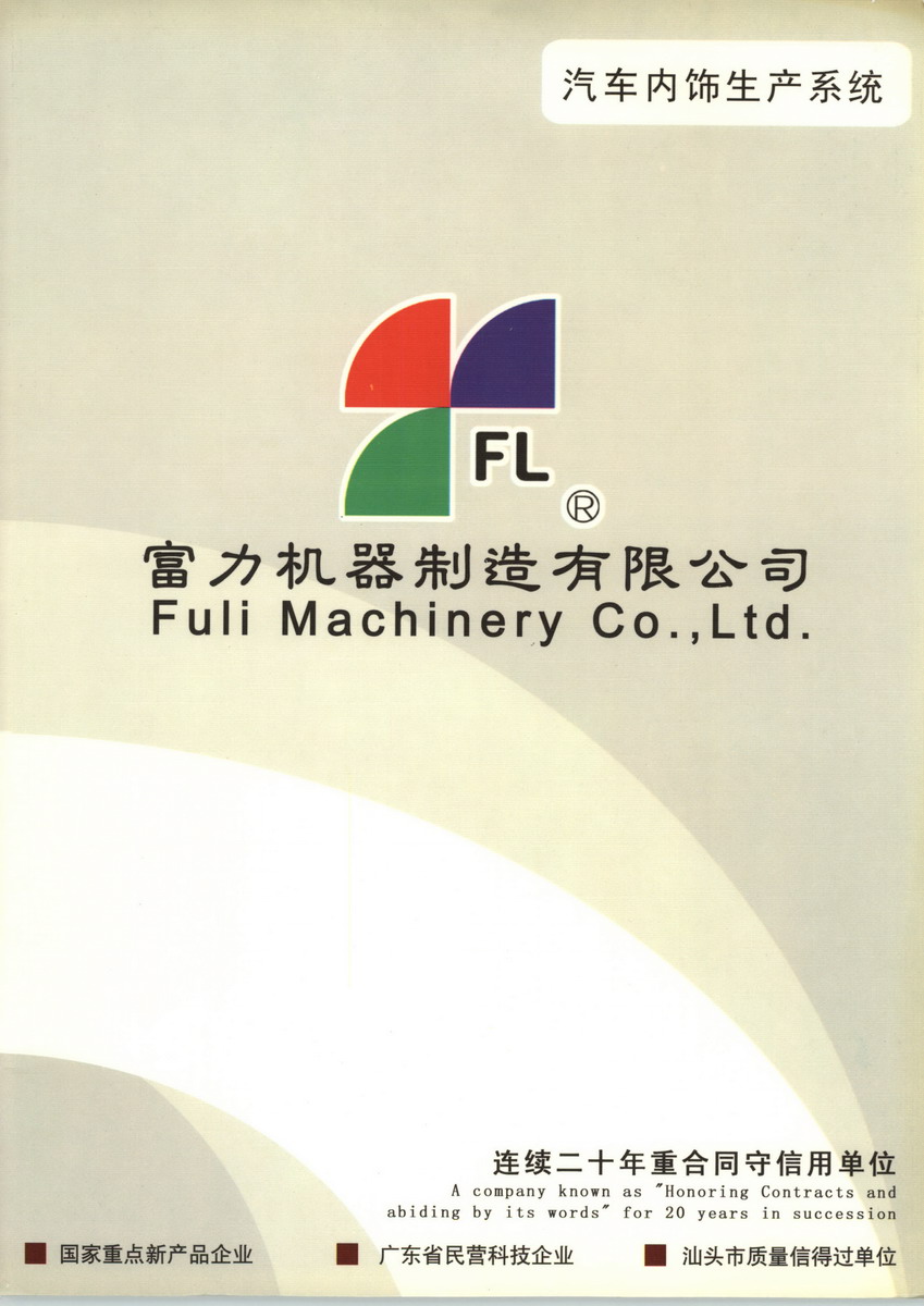 富力机器制造有限公司专业制造各种塑料热成型机器,提供各类汽车内饰件生产系统,包括有:汽车仪表板生产系统;汽车顶棚生产系统;汽车地毯生产系统;车门内饰生产系统;汽车行李箱内衬生产系统等。