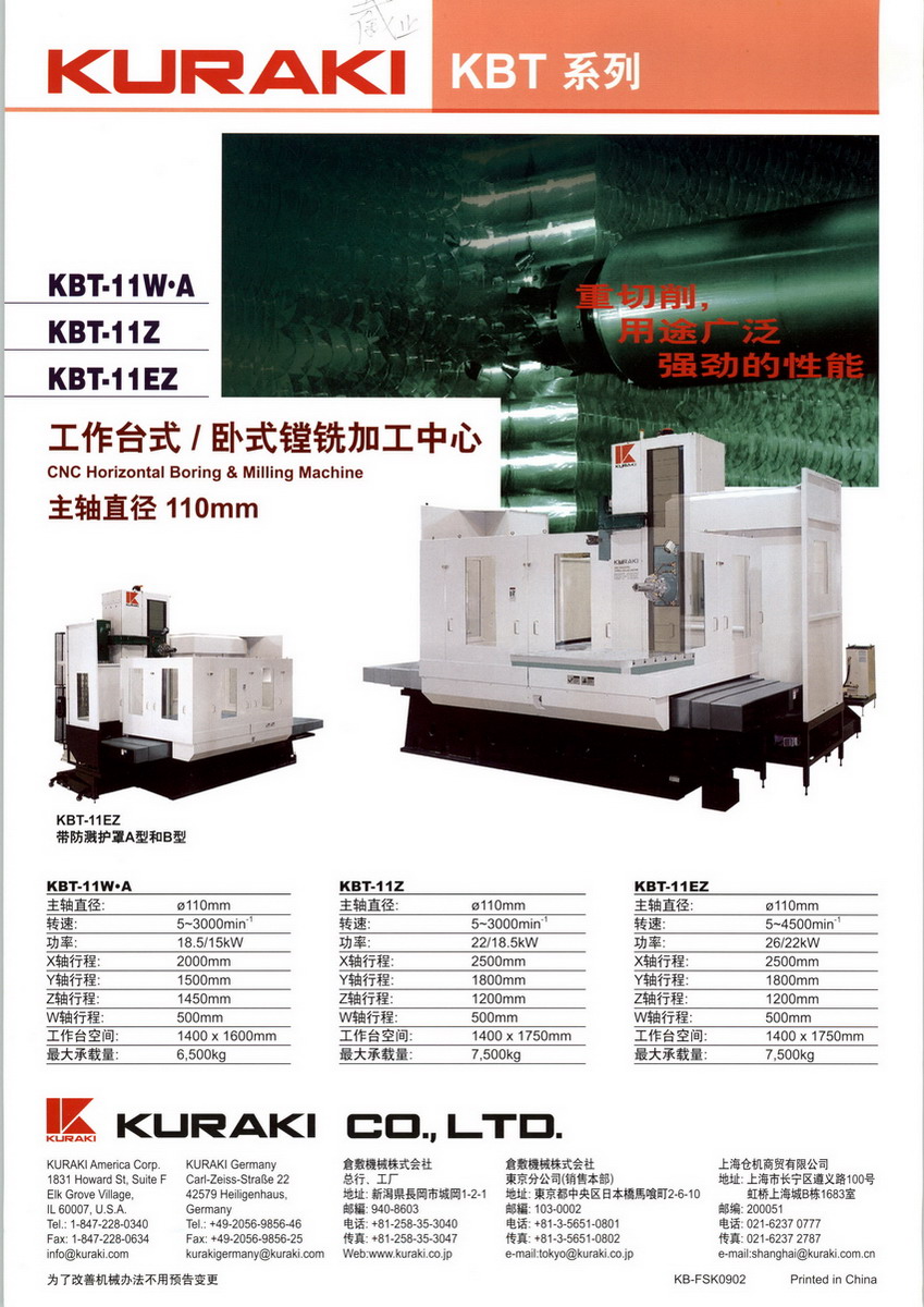 在中国经济快速发展中,为销售CNC数控卧式镗铣加工中心,并提供售后服务而设立的。首先于2002年开设了香港营业所、然后开设了上海代表处,最终于2005年12月设立了上海仓机商贸有限公司,100%由日本仓敷株式会社全资的子公司。该公司成为仓机(KURAKI)与中国之间的桥梁,通过代理商销售到了中国大陆。公司里保证有维护用零部件的库存,并由经验丰富的日本人工程师迅速地对应用户的问题。