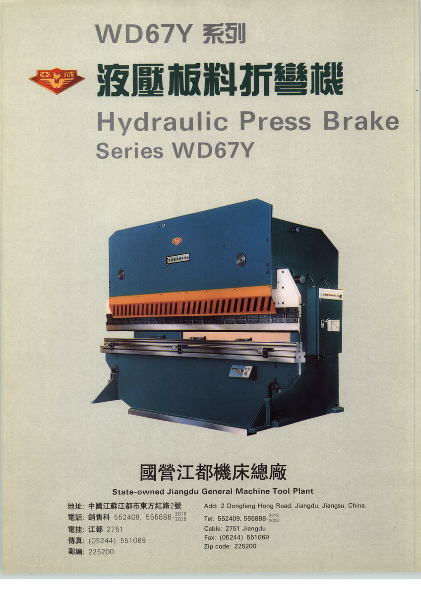 全国折湾机、剪板机产销量最大的企业──江都机床总厂厂长袁以信创建于1956年的国营江都机床总厂,是机械工业部定点专业生产板料加工机械的省属中型企业,现有职工1000余名,专业技术人员205人,其中,具有高级职称的10多人,中级职称的40多人,占职工总数的20%以上。全厂占地面积近12万平方米,厂房面积21700平方米,拥有固定资产原值3000多万元,各类加工设备260余台,精大稀设备30台,机械加工设备和检测手段完备。全厂现有六个生产车间和板焊、铸锻、热处理、模具四个专业化分厂。厂办机械研究所,具有产品开发设计能力,每年可自行开发新品2~3个。现行主产品为:16t、25t、40t、63t、100t、160t、250t、400t8个品种的板料折弯机(有普遍的和数控的);63t和100t的PC控制或数控折剪两用机;6×2500、6×3200、8×5000、12×3200、16×2500、20×3200、32×25007个品种的液压剪板机(有普通的和数控的)。