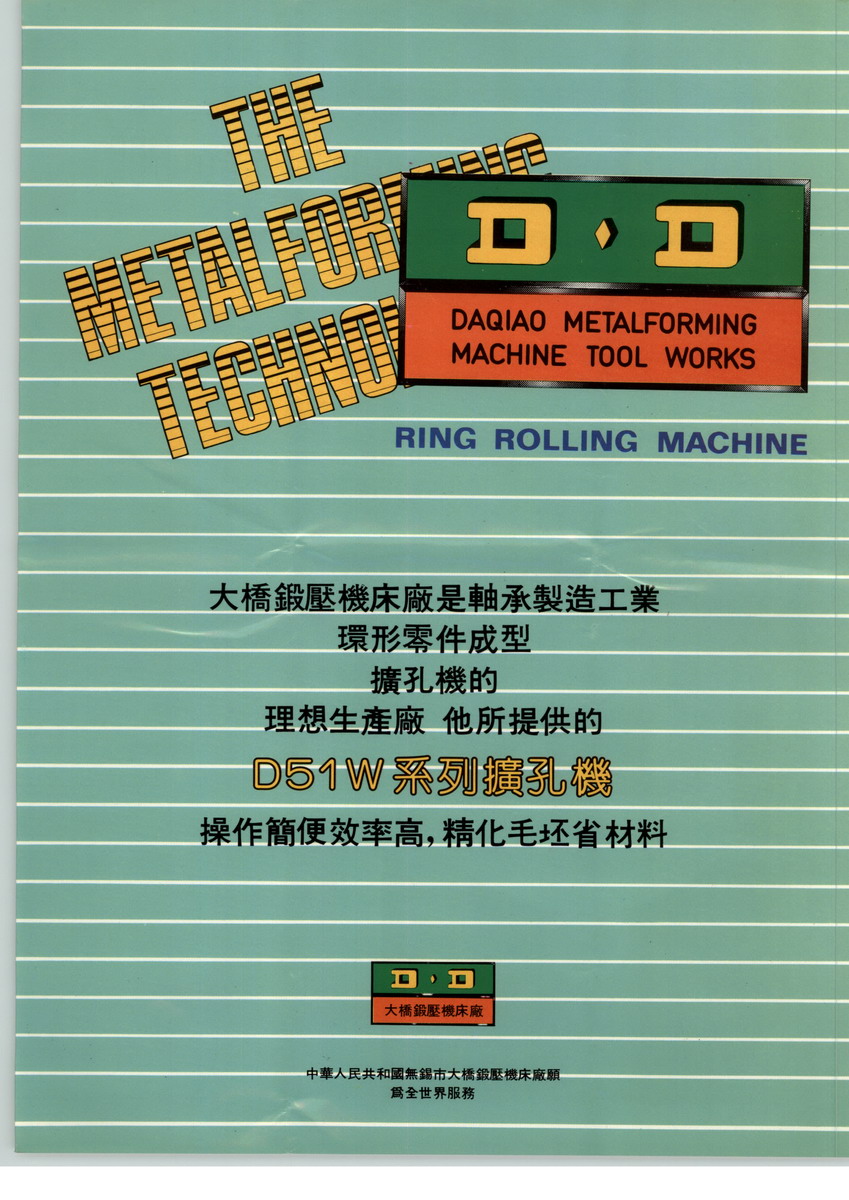 大桥锻压机床厂座落在交通便利、工业基础雄厚、富饶美丽的太湖之滨。1983年以来,专门从事辗环机的研制工作,为轴承、汽车、柴油机工业的环形零件辗扩提供新系列的辗环机。