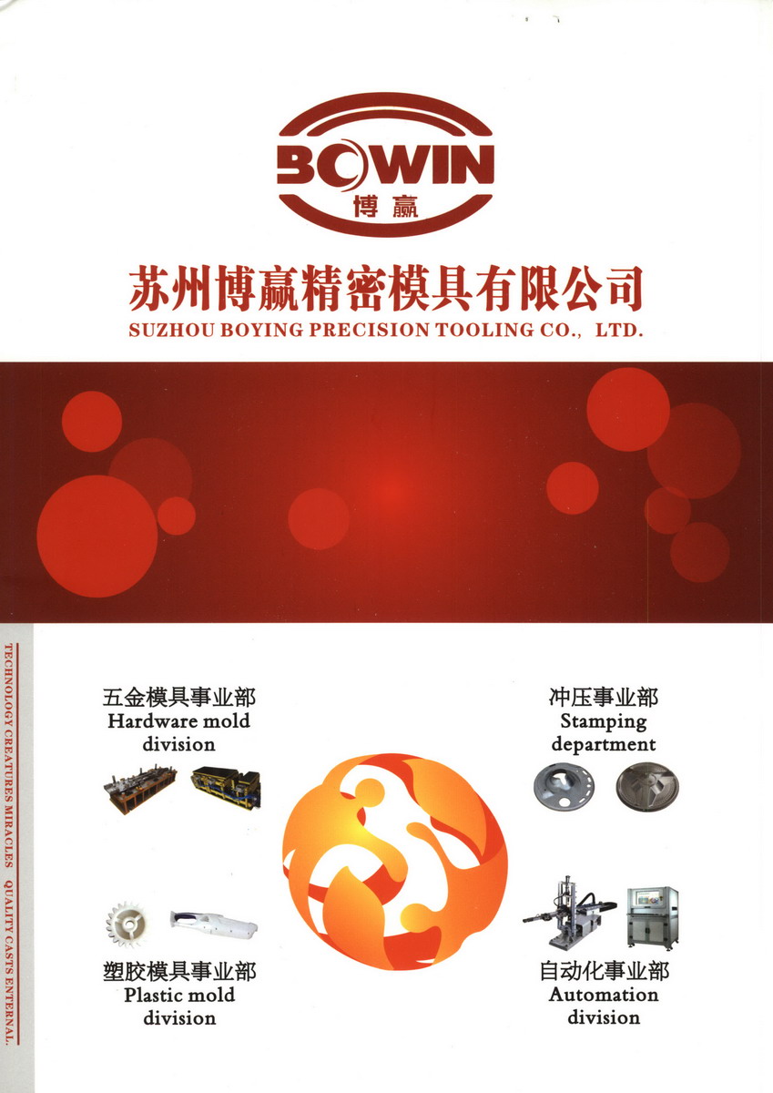 苏州博赢精密模具有限公司成立于2004年,属独资企业。座落于苏州市木渎镇金桥开发区南区33幢,设备总投资RMB1000万元。本公司成立以来主要致力于电器、数码产品、汽车零件、塑胶齿轮、文化用品等的五金模具、注塑模具、五金冲压之研发制造。专业设计团队用UG、Pro-E、PRESSCAD,采用HASCO、FATABA、DME、MISUMI等模具标准件,配合不同区域客户之标准。