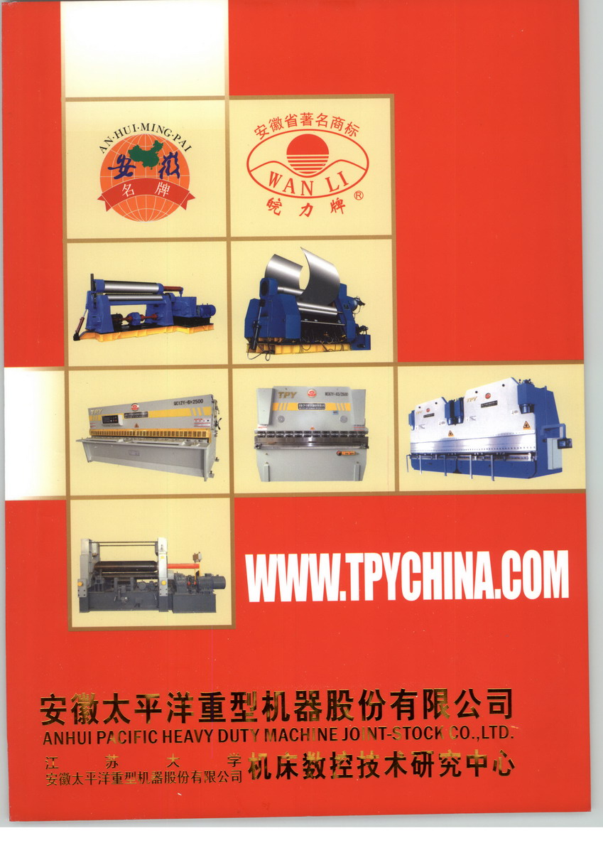 安徽太平洋重型机器股份有限公司系具有产品开发、科研设计、生产制造、技术服务等多功能重型机床制造企业,国家重点高科技产业,全国机床业骨干企业之一。主要产品有:三、四辊卷板机,开卷、校平、剪切生产线、锻造操作机、锻造装出料机、折弯机、剪板机、冲床及刃模具制造等等, 产品畅销全国各地及部分海外地区,得到用户一致好评。本公司位于古都南京与芜湖之间钢城马鞍山市, 毗邻南京碌口国际机场,314省道经过,交通十分便利,地理位置优越。公司始终将“创业、守业、敬业”作为企业的发展宗旨,将整个生产、销售、管理工作都融入到这六字方针中,形成了朝气蓬勃的企业发展氛围。公司秉承“创名牌产品,创优质服务”的经营理念,决心以扎实的技术实力,可靠的产品质量,快捷的服务体系,为用户提供全方位的服务,以赢得广大用户的信赖和支持。顾客的需要就是本公司的工作方向和奋进目标,随时随地尽我们所能向顾客提供优质的产品和卓有成效的服务,诚心诚意地接受各类意见、建议与投诉,与顾客建立牢固和谐的信任合作关系。本公司生产的“皖力”牌系列产品,已通过ISO9001国际质量体系认证,产品规格齐全,质量可靠,交货及时,生产设备齐全,制造工艺先进,本公司本着“诚信为本、质量第一、与时俱进、 共铸辉煌”的宗旨,多次被评为安徽省的“明星企业” “质量过硬放心品牌”及“重合同守信用”企业。并获得了“安徽省著名商标”、“安徽名牌产品”、“安徽省高新技术产品”、“安徽省高新技术企业”。