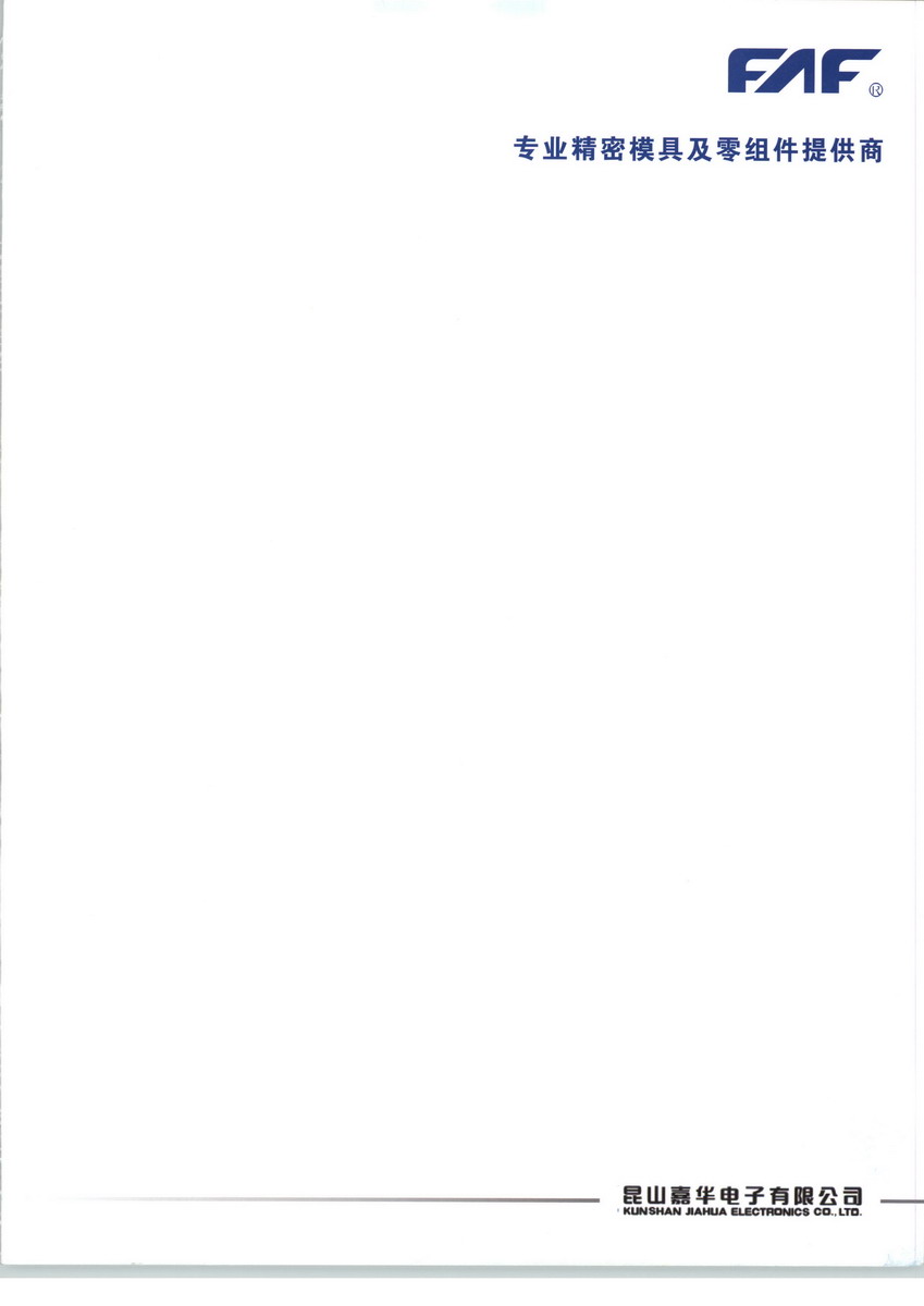 昆山嘉华电子有限公司2002年成立,隶属于1994年创建的华富集团,是集精密模具研发制造和精密连接器产品规模化生产于一体的专业连接器解决方案提供商,产品应用于消费电子、通讯设备、家用电器、汽车电子等领域。昆山嘉华电子有限公司建有CNAS资质认可的检测实验室、江苏省企业技术中心、江苏省精密高速模具工程技术研究中心,被认定为江苏省高新技术企业、全国模具标准化技术委员会委员单位、中国精密冲压模具重点骨干企业,主导起草了《电连接器级进模技术条件》、《连续嵌件塑料注射模技术条件》行业标准,已通过ISO9001、ISO/TS16949、ISO17025、SONY GP、ISO14001等多项管理体系认证。