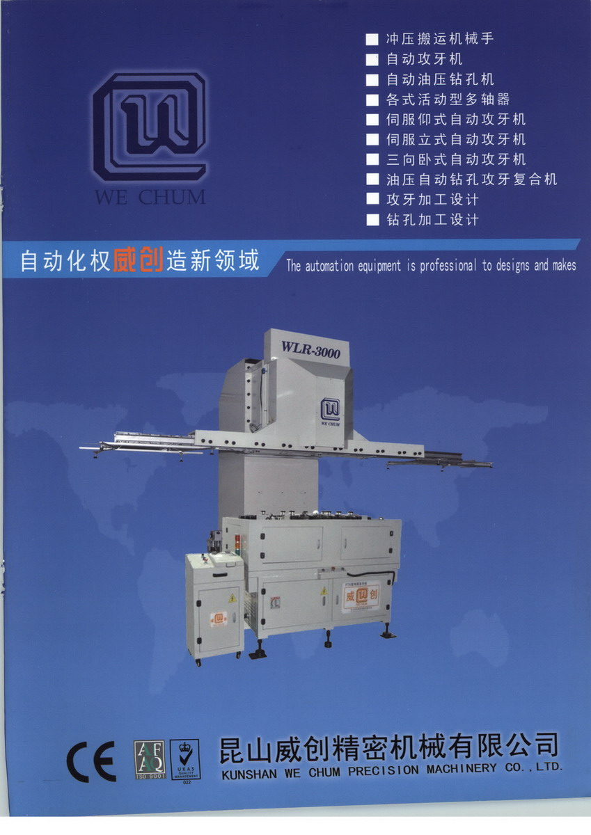 昆山威创自动化科技有限公司位于昆山市周市镇万安路383-1号,2004年建厂投产,是一家集工业自动化机器人的研发、生产、销售与系统集成等技术服务于一体的自动化企业.公司拥有众多具有丰富经验的从事机器人应用工程设计、自动化设备、制造及装配、调试技术的人员, 在自动化领域具备充足的技术研发能力和丰富的项目经验,为各行各业厂家量身订做最适合、最先进的自动化生产系统和解决方案。有效的为各企业解决日以严峻的人工高成本、招工困难、企业入不敷出等问题。为各行企业节约资源、提高效益,创造客户供应链和谐共赢。本公司更是以全新的姿态朝高新技术产业发展,现已发展成为集设计,生产,制造,销售和技术服务为一体的专业工业自动化生产商.并且是富士康,美大,美的,长虹,海信,海尔,三一等国内知名企业长期的合作伙伴,并有着良好的合作关系.昆山威创崇尚"创造" "奉献" "结缘"的原则, 本着客户是恩人,外协是贵人,员工是家人的经营理念. 期待员工生活更美好、让客户工作更便捷,使公司经营更达永续传承.随着经济全球化, 人口老龄化、劳动力成本的上升, 未来“机器人换人项目”将就从国家战略发展到各级政府和企业的政策导向和转型动力。昆山威创致力于为客户提供完善的自动化解决方案和交钥匙工程,为用户提供强有力的技术支撑,努力打造成为行业领先的高新科技企业,为中国工业的自动化和信息化作出更多贡献。