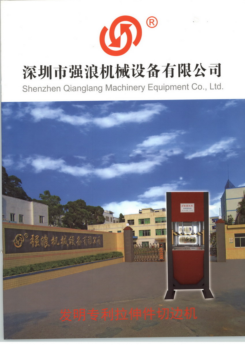 深圳市强浪机械设备有限公司以设计、开发、生产、销售、服务为一体的理念专业开发制造适用于各类拉伸件外壳的专业飞边,修边,切边机械。公司从2002年成立至今,在实践中申请并获得十多项国家实用新型专利证书。拉伸件切边机是通用的,不同产品制作不同的切边模具就可以切边。目前生产拉伸件外壳的厂家都存在着飞边,修边,切边的瓶颈难题。一直采取比较传统的方法切边,用比较传统的冲床模来冲、旋切模来切边,用锣床来锣,用改造过的车床来车,甚至用人工来打磨。这些的切边方法复杂而效率低,模具成本高、制作、装配、拆卸费时费力,保养维护复杂。所操作的工人相对要有一些技术含量的人才可以做,所切出来的产品尺寸不一致,这给后期的各工序带来不便,效果不好,又有披锋,还有压痕,严重影响了产品外观,降低了企业产品的整体竞争力。而我们的拉伸件切边机可以切除任何形状的拉伸件的边缘,机床是通用的,不同产品制作不同的切边模具就可以切边。模具制作简单、切边效率高,模具成本低、装配、拆卸简易高效,保养维护方便。利用了模具错位并结合了机床联动原理,像剪刀那样一个点水平剪出去的,一次性切除,切口平整,没有披锋,效率高,精度精确。它是异形,不规则的,边缘高低不一至或带有圆弧,脚仔和缺口等拉伸件的专业切边机械。数控批花机是一款专门做表面处理批花,主要应用于铝、铜、标牌凸字的高光批花的数控机床,本机床为人机界面的高精度系统,数控操作系统稳定可靠,丝杆线滑工作台稳定性高,大理石机架稳定性好,采用步进电机驱动,真空吸气,精密丝杆;精确度为1微米。机床走动均匀,可调粗调细,主电机的转速为12000r/min。人机界面操作简便易懂,无须专业人员操作,而且可连续自动完成批花两次。刀具在非切削区域自动停止不会转动,安全性高。我们本着精益求精,不断进取,不断完善的理念,保证我们卓越的品质和良好的信誉。欢迎光临或咨询,我们期待与您合作共创辉煌。