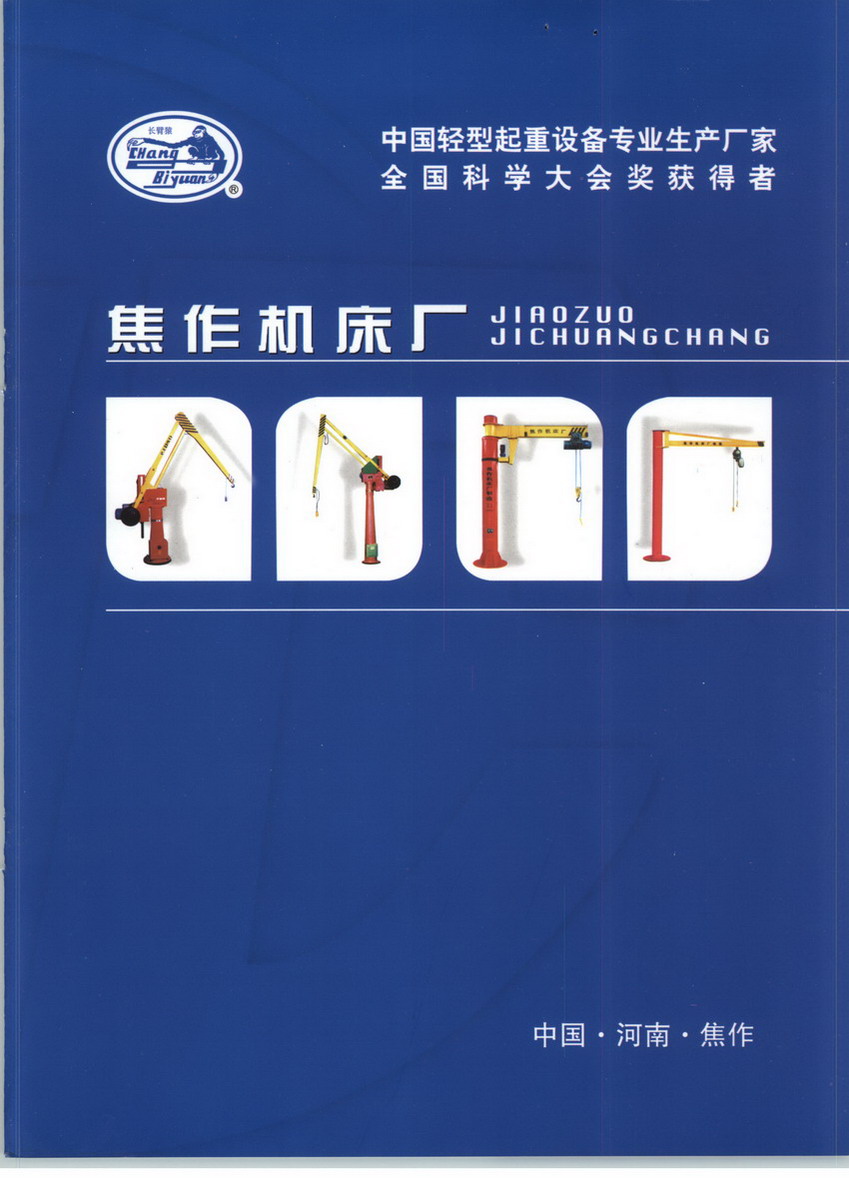 焦作机床厂位于太行山南麓的一个工业城市——焦作市,境内交通发达,旅游资源丰富。焦枝、焦太铁路、焦晋、焦郑、长济高速公路穿境而过。境内有世界地质公园、国家级风景区:全国落差最大的云台山瀑布;有被誉为北方小三峡之称的青天河水库;及被誉为“太行精粹”之称的神农山风景区,以及太极拳发源地-陈家沟。焦作机床厂创建于1958年,从事机械制造业,有机械加工、锻铆焊、热处理、装配、机电等车间。建厂以来,先后生产C620车床、Z35摇臂钻床、Z32K钻床、落地钻床、ZD5机械动力头。1975年受日本、西德技术的启示,由焦作机床厂、原一机部第八设计院和天津大学三家在我厂联合设计、研制了轻型起重设备——平衡吊、旋臂起重机。中国第一台平衡吊就诞生于我厂,从此填补了我国轻型起重行业的空白,被原一机部定为全国平衡吊、旋臂起重机定点生产基地。四十多年来,我厂产品不断改进更新换代,品种不断增加,形成我厂的独有风格。拥有平衡吊( PJ010~PJ080)、旋臂起重(0.25T~3T)。两大系列40多种规格。我厂技术力量雄厚,设备先进,检测手段齐全,信誉高,服务到位。先后获得了河南省创业杯奖 ,首届全国博览会金奖,被市政府命名为“重合同、守信用”单位。中国工商银行河南省分行授予 “AAA级信用企业”。中国保护消费者基金会推荐:长臂猿牌平衡吊、旋臂起重机为消费者信得过产品,同时“长臂猿”商标被评为《河南省著名商标》,产品畅销全国各地,远销东南亚,深受广大用户广泛赞誉 。近年来,企业不断的深化改革,遵偱“以质量求生存、以市场为导向、以管理增效益、以创新求发展”的方针。企业效益不断提高,企业实力不断增强,成为焦作市机械行业中的佼佼者和全国轻型起重行业的排头兵。