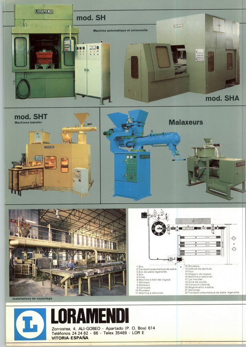 LORAMENDI INC. was incorporated in 1994 as a wholly owned subsidiary of LORAMENDI,S.Coop. a Spanish Company located in Vitoria in northern Spain. LORAMENDI, has established itself as a world leader in the design and manufacturing of foundry equipment, mainly core blowers and machines for the SHELL process. A new range of core-making equipment for the COLD-BOX process soon followed. This process generated demand for high-speed production equipment. In response to customer requested for highly accurate core package production, LORAMENDI developed its patented KEY CORE ® system, which allows the assembly and interlocking of individual cores into a solid core package, automatically, without using glues or screws.The latest product line launched by the company is the Flaskless Vertical Molding Machine, Loramatic. The US subsidiary supports sales, after sales service and spare parts for all our product line to our new and existing customers in North America and Canada.