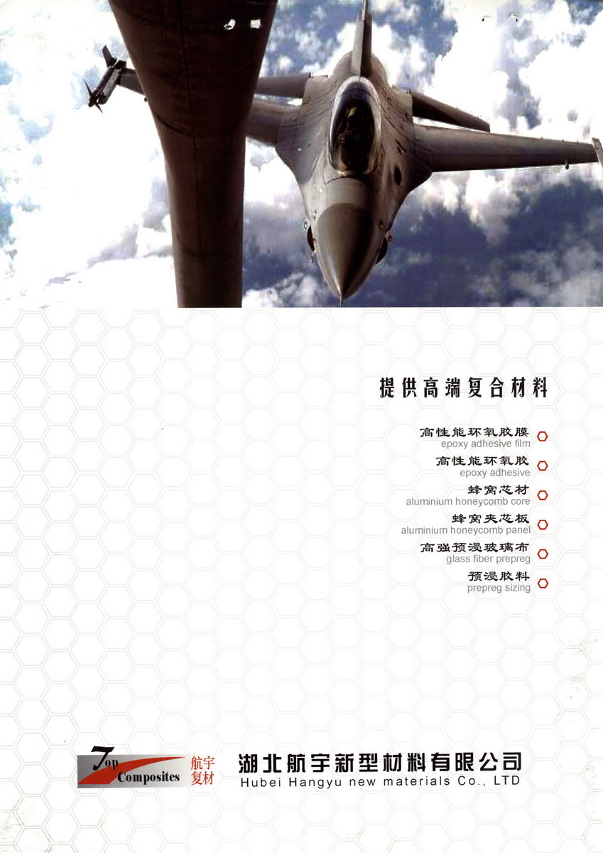湖北航宇新型材料有限公司是一家专业从事铝蜂窝芯、环氧胶膜、玻璃纤维预浸料、芳纶蜂窝、铝蜂窝板生产的厂家。公司已经通过GB/T19001-2008 idt ISO9001:2008以及GJB9001B-2009质量管理体系认证。公司生产技术来源于中国航空工业,技术指标及工艺参数遵循的是航空标准。公司技术工程师、高级技术员、工人均来自于航天航空各专业的技术骨干。公司有全数控的窝芯制造设备,全数控环氧胶膜生产线,环氧预浸料及蜂窝板材设备。本公司现已设立蜂窝板研发中心,致力于蜂窝结构材料的生产、研究和推广。铝蜂窝芯空格边长最小可以做到0.5mm,环氧胶膜性能已远超国内同类产品,大量应用于航空航天产业及高铁产品制作.主要产品:1、高强环氧胶膜 2、环氧高强阻燃玻璃钢蜂窝板(铝蜂窝芯、芳纶蜂窝芯) 3、高强环氧胶(阻燃和普通) 4、铝蜂窝芯 5、高强玻璃纤维预浸料。6、pvc复合地板(铝板+pvc发泡板+铝板,强度高、重量轻、阻燃)