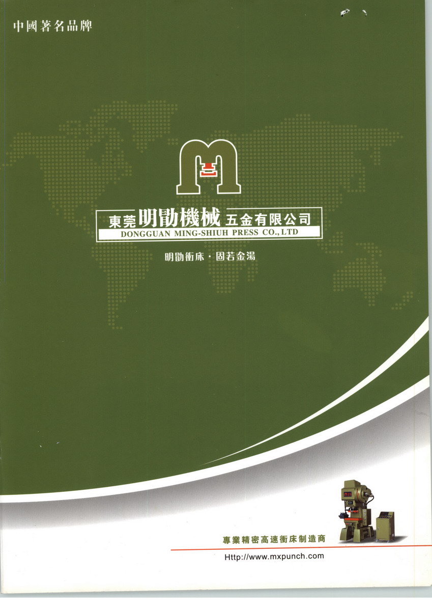 东莞明勖机械五金有限公司属台商独资企业,拥有车床、铣床、刨床、磨床、钻床、镗床、数控镗床、震动仪等先进机械加工设备,专业从事M25、M40、M60及HHD30、HHD45、HHD65等系列高速精密冲床的研发、制造及销售,产品销往全国各地,配套设施完善,布局合理。公司遵循ISO9001:2000国际质量体系,实施科学化、制度化、人性化的管理,造就优秀的國際級工作团队。以"技术革新 性能卓越 尖端品质 服务贴心 交货及时 创造价值"作為品质管理最高指导方针。專業研发部门具有C型和龙门型高速冲床的单独、完全的研发能力。品管部门配备擁有近千种精密級仪器能精準檢測冲床各項零配件,以求穩定的品质為原則。经过十余年的发展,公司已经拥有国际水准般的經營团队。公司东莞厂所在珠三角地区和苏州办事处所在江浙沪地区均可以保证售后服务从接到客户电话起,二十四小时内处理完毕。目前产品行销北京、上海、广东、广西、浙江、江苏、四川等十余省市,并出口至东南亚各国及中亚部分国家,产品性能和质量及售后服务等各方面深受客户好评。本公司严格依照《劳动法》及《劳动合同法》之相关规定,安排作息时间。本着"以人为本"、"能者上、庸者下"的用人理念,在公司内部形成了一个较为宽松而富有良性竞争的工作氛围。公司努力打造学习型企业,并与專業級企业管理咨询公司长期合作,为公司员工提供有计划性的系统培训,让员工在为公司奉献的同时,员工自身也能够不断提高、提升自己的技术水平和人力价值。公司位于东莞大朗松木山富民股份工业园,毗邻松山湖,地理位置优越,临近莞深高速公路、位于松山湖高新技术产业园旁、交通便利;厂区面积7000余平方米,厂内环境优美,住宿清爽,内部公共设施齐全,宿舍内配有独立之卫生间、热水器等基础设施,建有图书馆、娱乐室、篮球场、台球等职工学习和娱乐公共设施。公司正在不断发展与扩大,职工福利待遇也在不断提高与改善,我们正本着诚信、敬业、务实、创新、卓越的企业精神开创美好、辉煌的明勖。