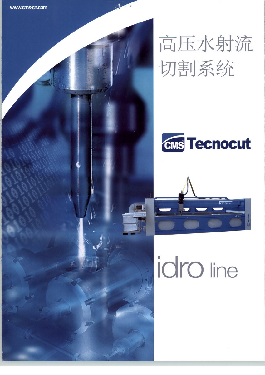 意大利CMS —Tecnocut(该公司)是生产高压水刀切割机的领导者。高压水刀切割机又称作高压水射流切割系统。意大利CMS —Tecnocut公司具有完整的设计、研发、生产能力,技术底蕴世界首屈一指.意大利CMS —Tecnocut公司在3个方面具有核心技术:超高压增压泵、智能切割系统、尖端管理与控制软件。意大利CMS —Tecnocut公司的五轴水刀切割机所使用的超高压增压泵功率为22.6~90kw,放大器2-6n0,最大水压4160bar,最大流量2.5-9Vmin,最大孔径0.28-0.5mm。工作台尺寸分别是:2700x2050mm,4600x2050mm,4600x2100mm;A轴6000,B轴±6000。CMS Tecnocut在本次展会中主要携Idro line高压水射流切割系统和Easyline水射流切割技术参展,展示其高效、精确及高质量的智能化设备。公司超高压增压泵、智能切割系统和尖端管理与控制软件的居于行业技术前沿的3个关键技术,能够保证向客户提供完整的,全面的水切割系统的解决方案。此次展出的Easyline可使广大客户以中等的投资拥有一个最高性能的设备。Tecnocut的切割头配备了防碰撞的表面跟踪接触器感应切割产品的高低变化,并自动调整切割头的高度,可适合不同的切割加工。Tecnocut的技术发展通过20年的实践积累,已经带动机械制造业在降低生产成本的同时实现最佳性能,且这些设备完全来自意大利本土制造。Idro line超过任何技术标准,引领市场,它是第一个能有效的控制水流喷射速度和精度;第一个拥有连续控测的5轴切割头,有效地处理摆动切割,可控制切口宽度。Idro line不仅能完成大部分的切割加工要求,同时也能完成一些特殊的加工要求。