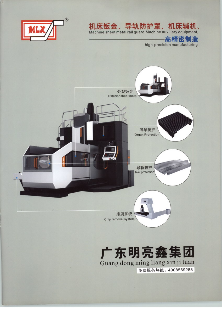 东莞市明亮鑫实业有限公司是专业设计开发、生产及销售机械附件的工厂。公司拥有技术优良、经验丰富的设计团队,协助客户设计可靠有效的非标方案。拥有数十种国内外数控精加工设备,实施严格的iso9001品质管理体系进行检测控制,秉承“客户至尊,和谐共赢”的原则,为客户提供高品质的产品与技术支援,以及完善的售后服务。公司经过近十年的发展创新,目前产品涵盖四大系列三千多个品种,产品远销至德国,美国,日本,澳大利亚等国家及地区。 业务范围:1.防护系列:不锈钢护罩.高速机床护罩及各种风琴护罩.防护帘.防护套等. 2.钣金系列:各种机床外罩.机箱机柜.工作台等: 3.排屑机系列:螺旋.磁性.链板.刮板及各种排屑车等: 4.防水防爆系列:油管及全部配套接头,工程塑料拖链.金属dgt导管.钢制拖链