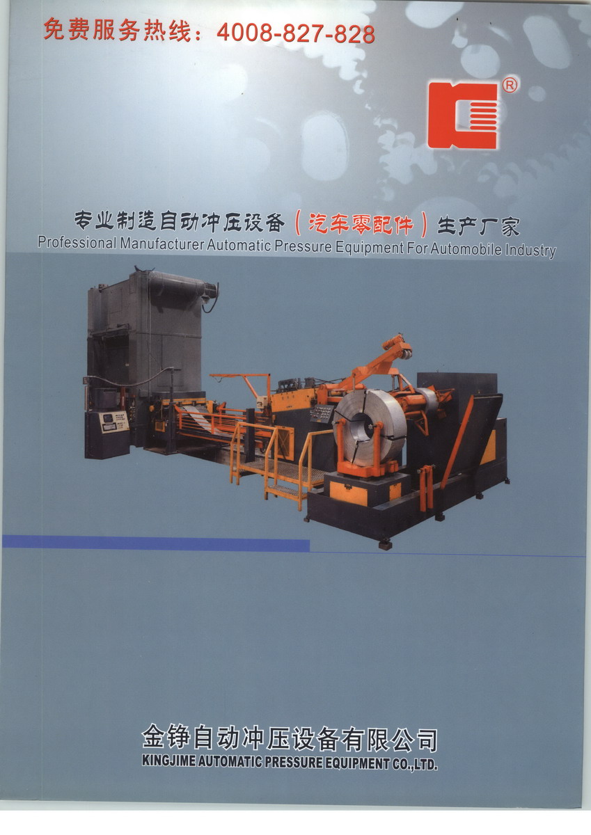 金铮自动冲压设备有限公司成立于1995年,是国内首屈一指的冲压行业着名企业,本公司主要生产横剪线、纵剪线、分条机等专业开卷校平剪切生产线系列;TNCF三合一、矫正机、材料架、送料机等冲床及其周边设备系列产品,广泛应用于电子、汽车、玩具、五金等各冲压行业。 本公司在2006年、2007年分别通过了相关产品CE认证、国际质量体系管理相关ISO9001:2000认证,工厂占地面积28000多平方米,备有大型生产、装配车间和合理的厂区配套设施,并与许多大型公司及企业建立了良好的合作关系,产品行销全国各地及海外市场。 我们的服务宗旨是:“以品质求生存,以信赖赢客户”,全体员工将秉承品质、技术、服务之原则,为您提供全方位的服务,并真诚期待您的支持与惠顾......