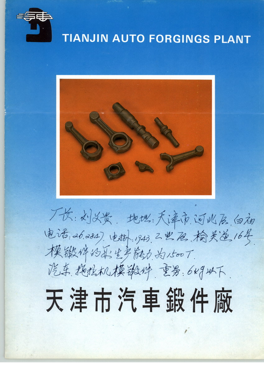 天津汽车锻造有限公司1956年间厂年建厂,占地面积4.7万平方米。于2002年12月12日改制为民营的股份制公司。改制后的新企业走民营化道路,扩大国际出口市场,营造外向型的管理先进的企业,与国际接轨。 天津汽车锻造有限公司改制后截止2003年11月底在册职工498人,其中拥有专业工程技术人员 40名,工人技师11名。