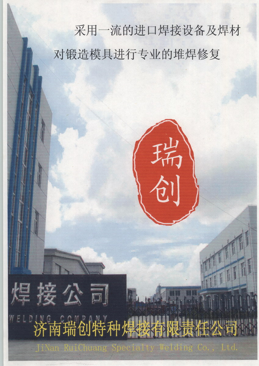 济南瑞创特种焊接有限责任公司坐落于美丽的山东省济南市,是一家以锻造模具的设计、加工和堆焊修复为主营业务,同时涉足锻件与焊材贸易的多元化经营公司。公司于2008年创立,凭借技术、设备、服务等综合优势,近年来取得了长足发展,客户群遍布全国,现已成为同行业中的佼佼者。