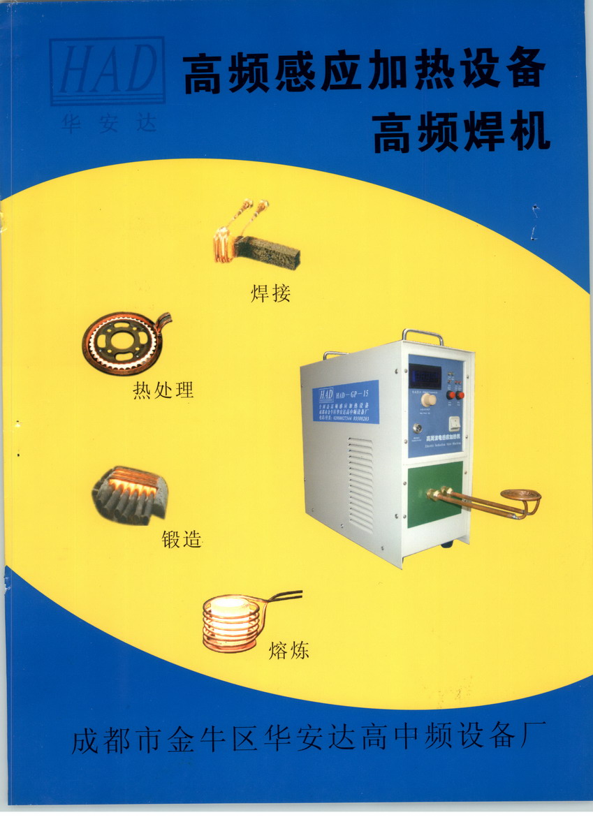 华安达高中频设备厂坐落在美丽富饶的天府之国四川成都,是一家专业从事全固态高频感应加热设备开发、生产、销售和服务为一体于的现代化民营高科技企业。本厂技术力量雄厚,由多名博士、硕士和专业技术人员组成的技术开发部具有强大的科研、开发、创新能力。